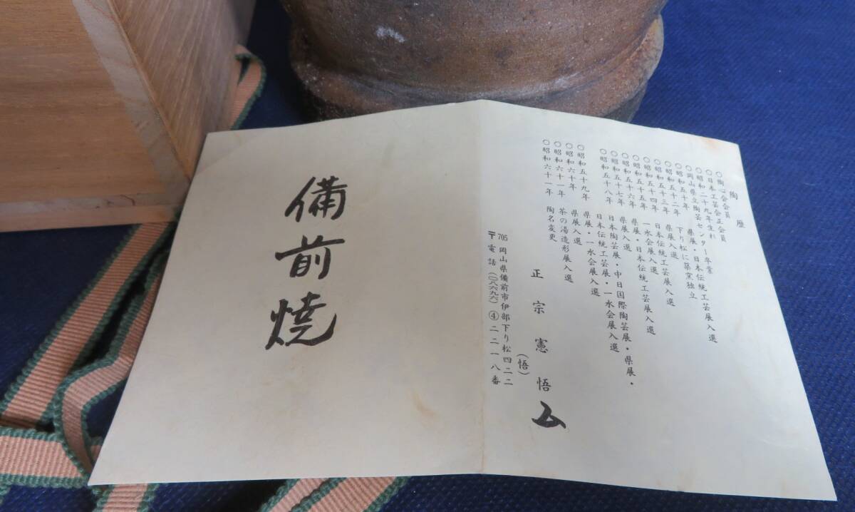 未使用 備前焼 正宗悟 壺 共箱 備前花器 花瓶 壷 桂又三郎 推