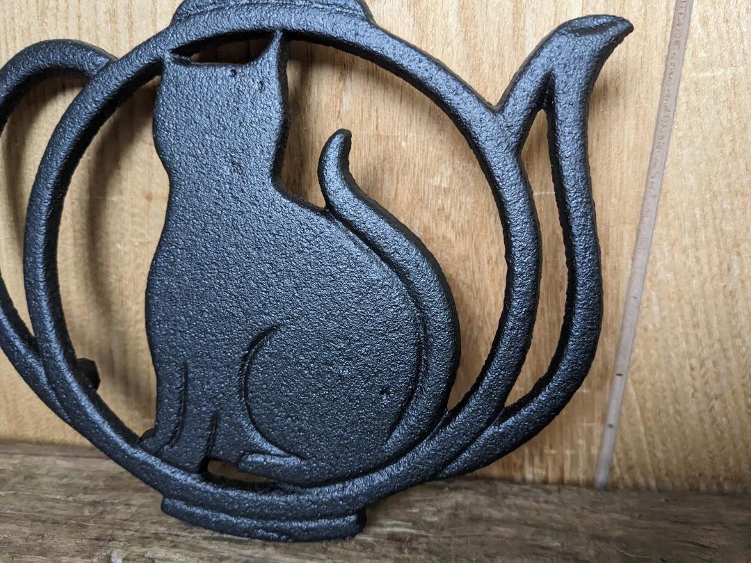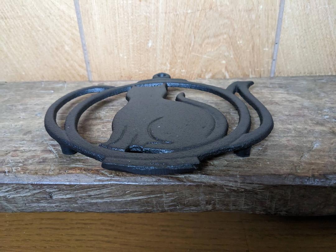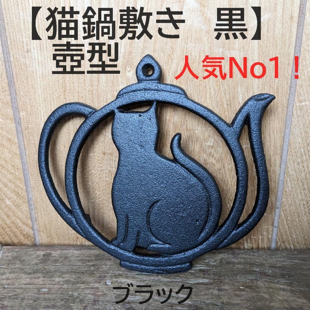 【黒1枚】猫鍋敷き 壺型 ブラック なべしき 鉄 キャンプ 一人鍋 ねこ 猫