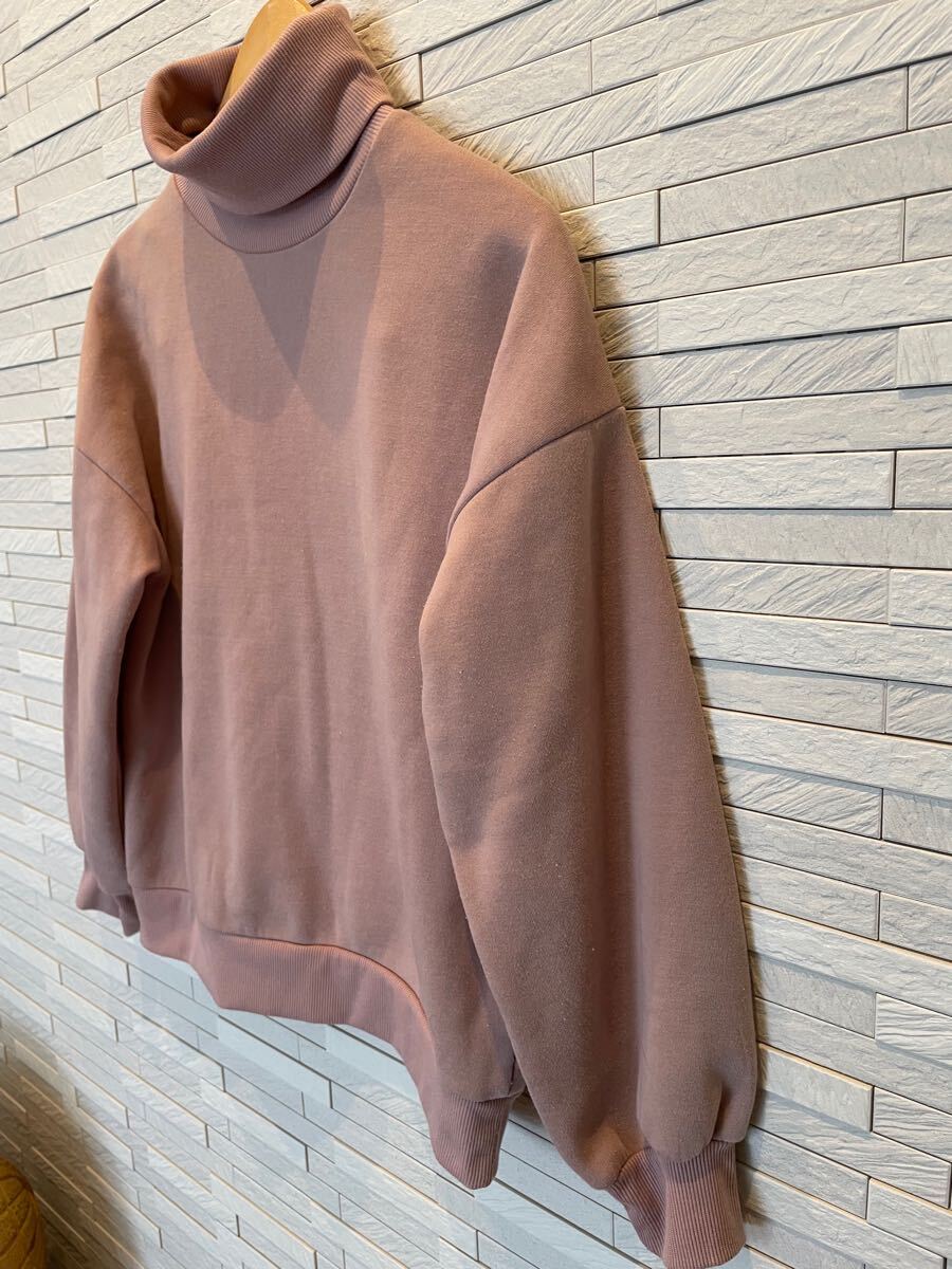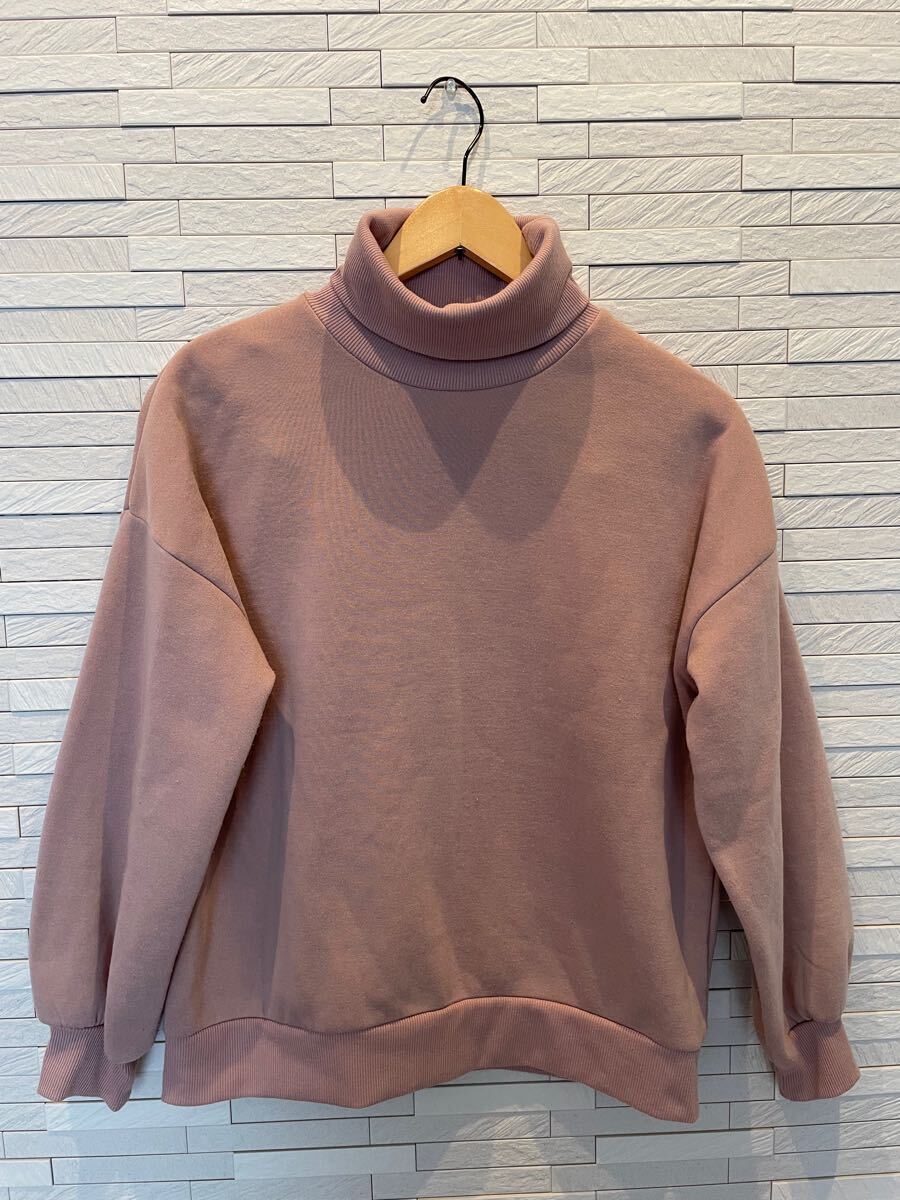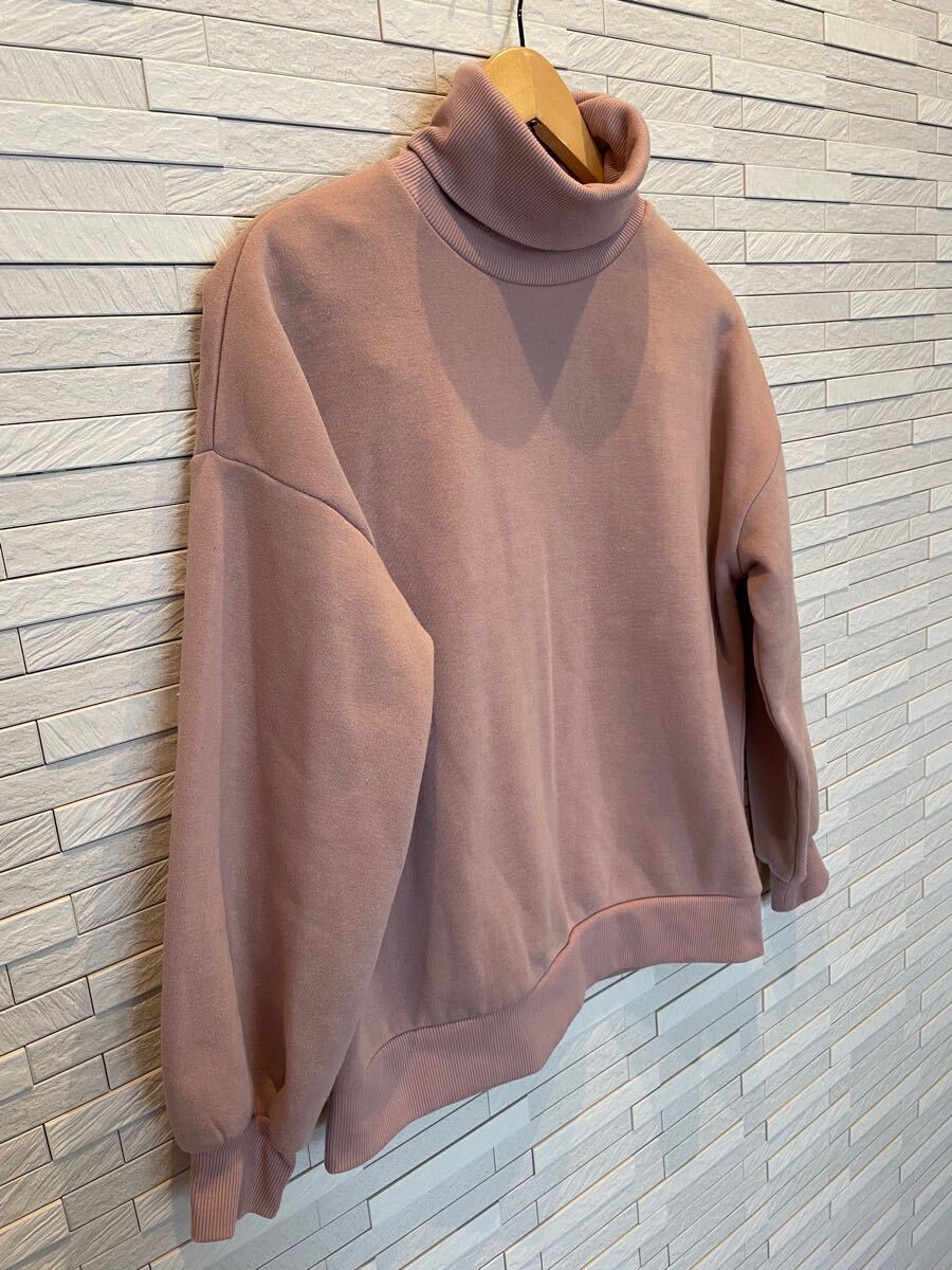 裏起毛 タートルネック トレーナー Lサイズ スモークピンク