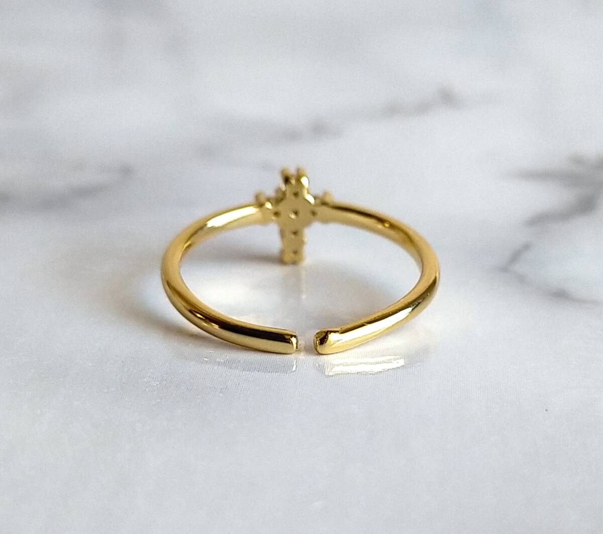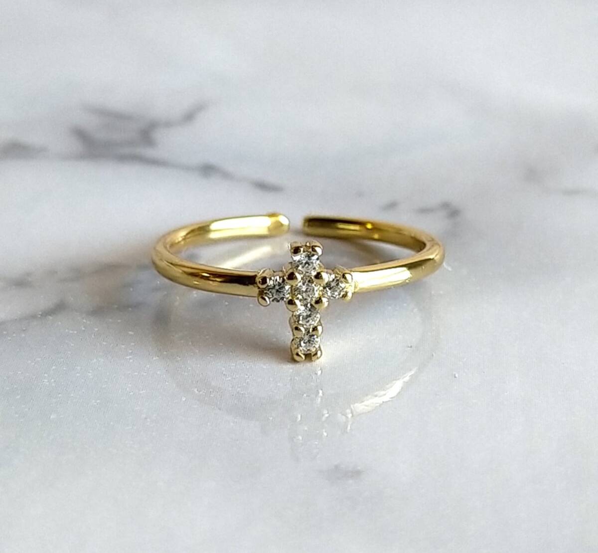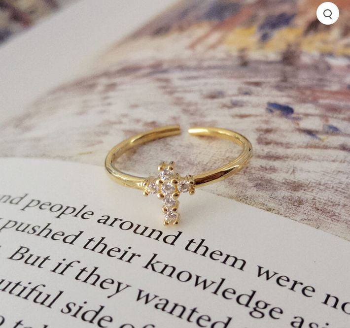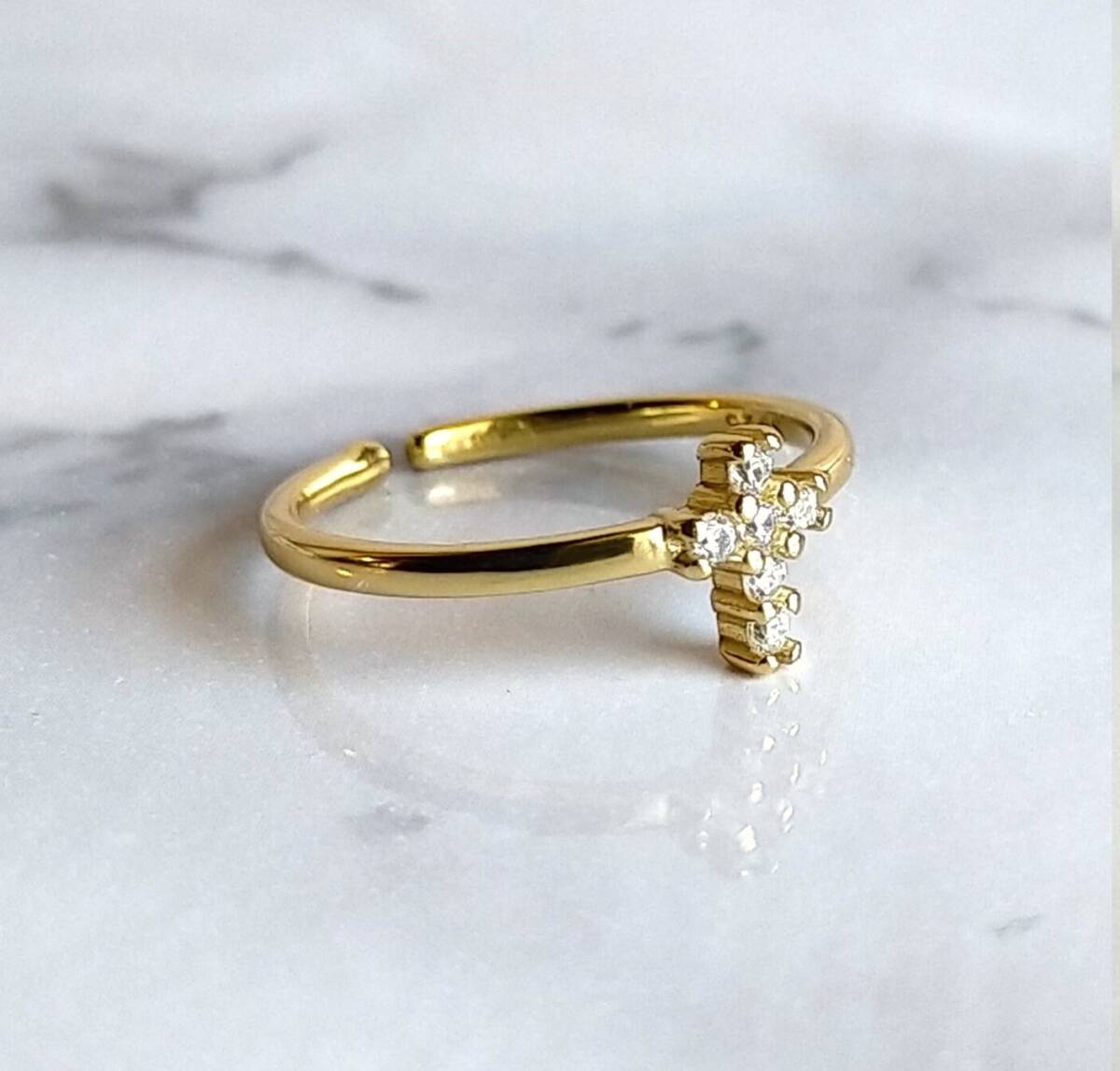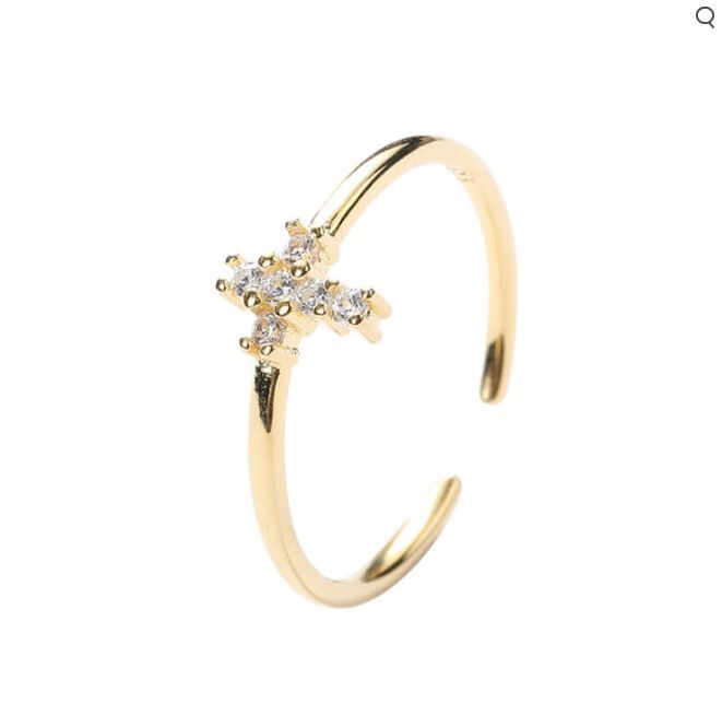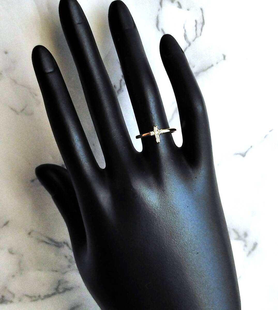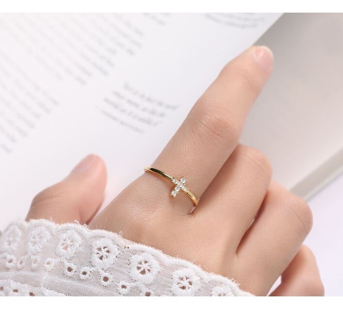 クロス リング ゴールド シルバー925 華奢 指輪 十字架 フリー 調節可能 CZジルコニア