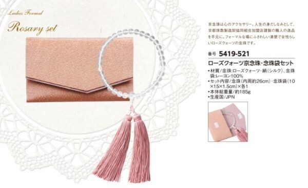 【商品番号】 5419-521 【商 品 名】 ローズクォーツ京念珠・念珠袋セット |