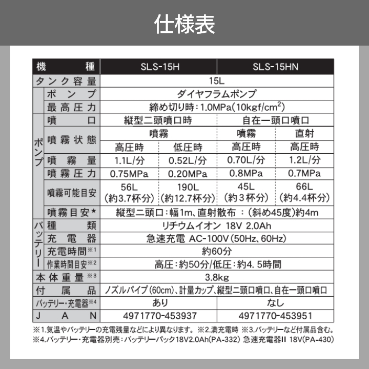 機種:SLS-15HN ※バッテリーパック、急速充電器別売