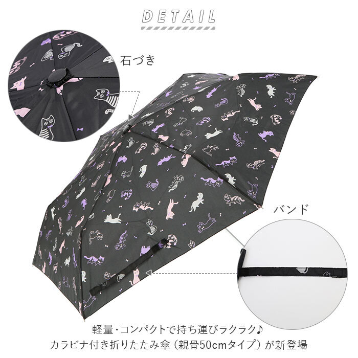 | 商品説明 | ・・軽量・コンパクトで持ち運びラクラク♪大人女子に人気の「Amusant sous la pluie(アミュゾン・スー・ラ・プルイ)」から、カラビナ付き折りたたみ傘(親骨50cmタイプ)が新登場。 ・親骨や中骨シャフトにアルミ素材を採用し、重さわずか160gの軽量設計!3段式にコンパクトに折りたためて、傘生地を広げれば直径約92cmの程よいサイズに。 ・開閉時に指先や爪を挟むのを防止する安全カバー付きで、スムーズに開閉できる手開きタイプ。ネイルアートを施した指でも安心して開閉可能。 ・傘生地を留めるバンドは面ファスナー式なので、傘生地をサッとまとめられて、たたむ時に手間取らない♪ ・付属の収納袋にデザインされた、Amusant sous la pluieのロゴパッチとキュートな傘マークが注目ポイント! ・ハンドルがカラビナのようなフック形状になっているため、カバンの持ち手やリュックなどに引っ掛ければ、かさばらずに持ち歩ける♪ ・ボーダーやストライプなどのベーシックな柄から、キュートなキャット柄まで、バリエーション豊富にラインナップ。自分色の傘生地をチョイスして、雨の日も楽しくお出掛けできそう♪ |