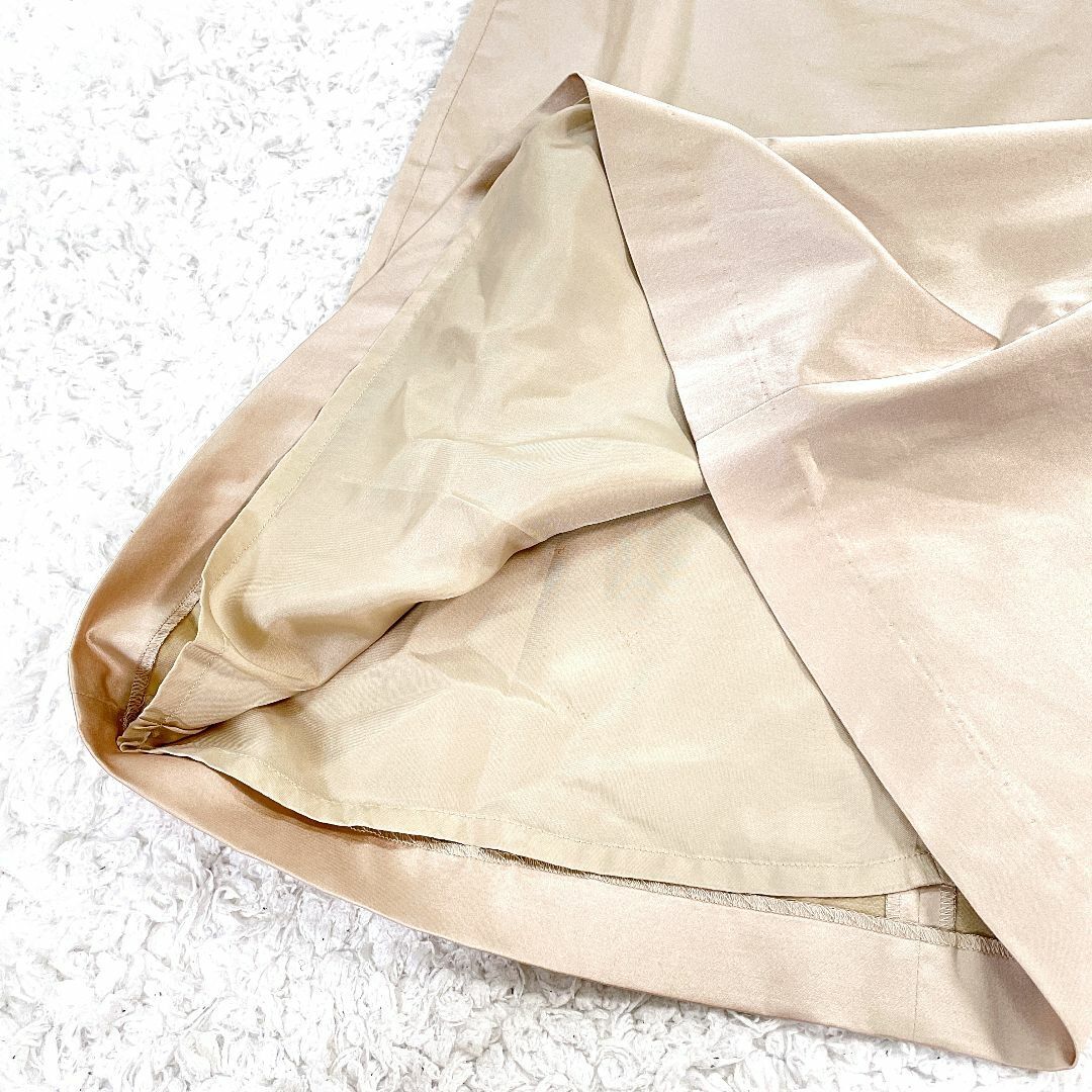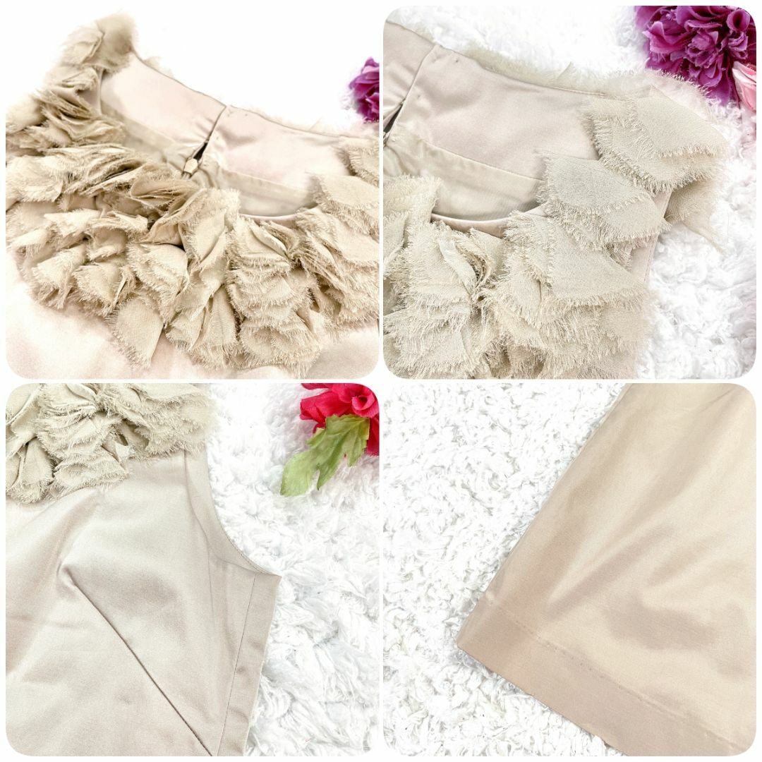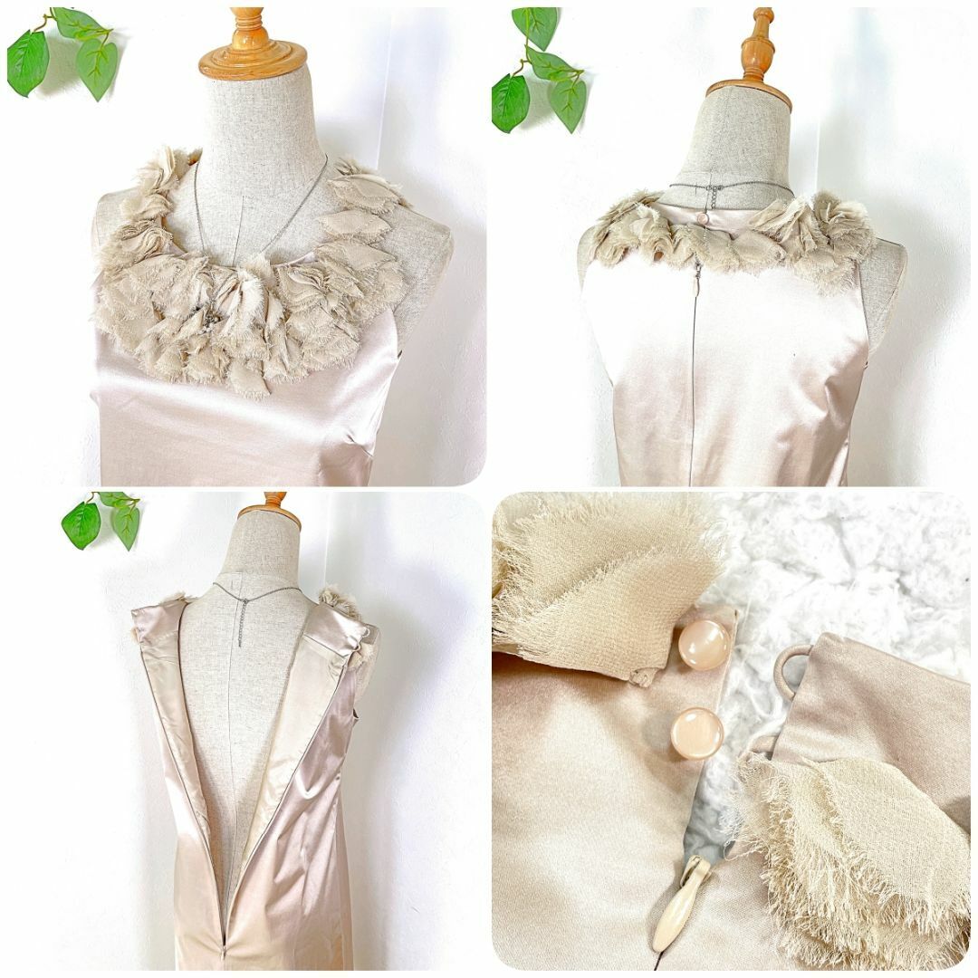 【極美品】 ANAYI フロントシフォン ノースリーブワンピース パーティードレス サテン 光沢感 36 アナイ ライトベージュ ひざ丈ワンピース