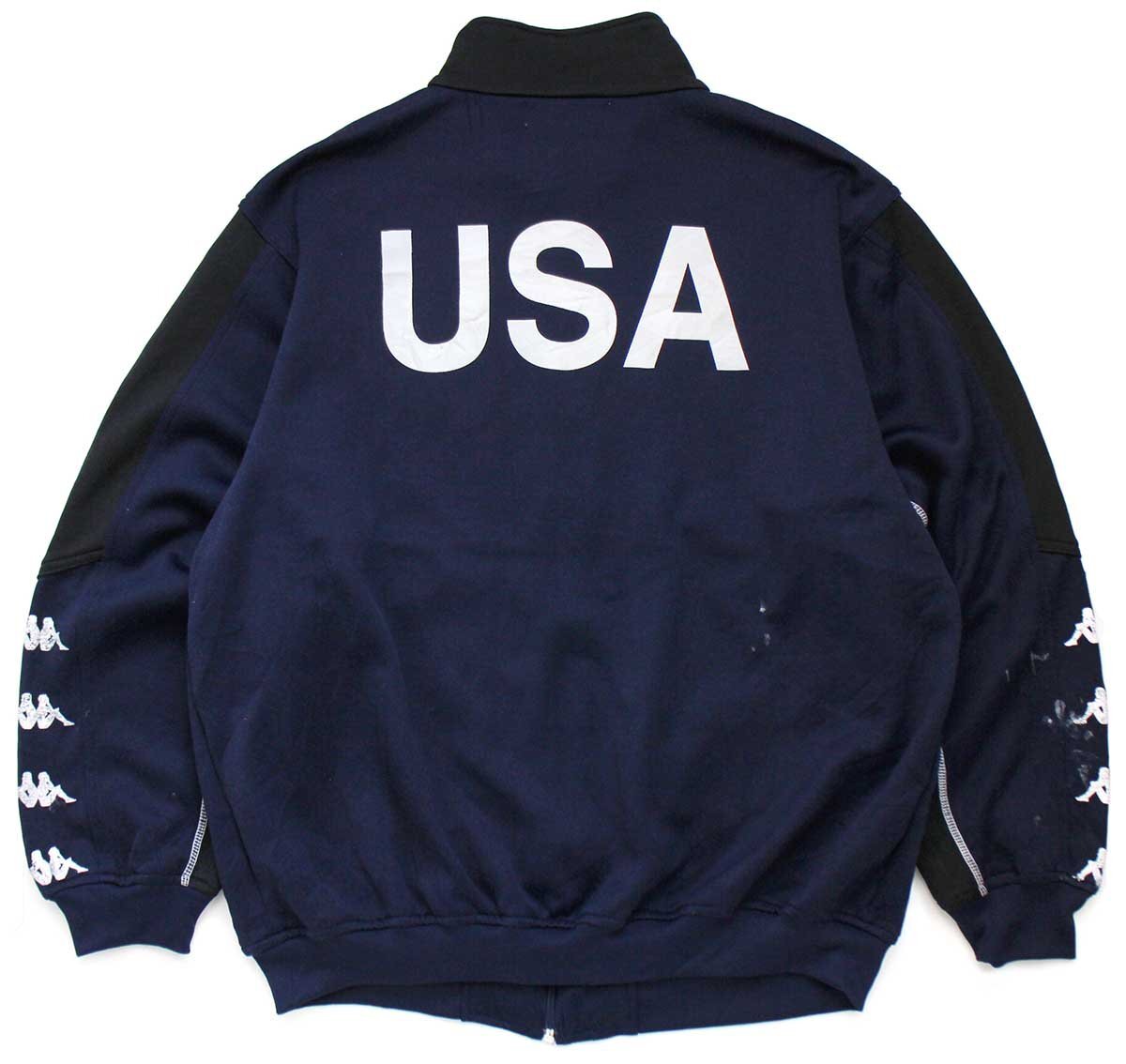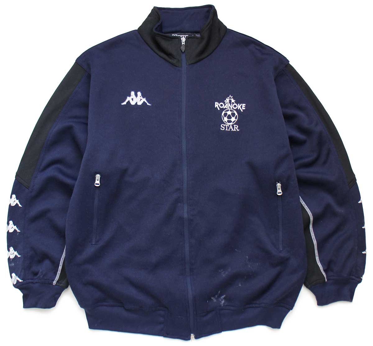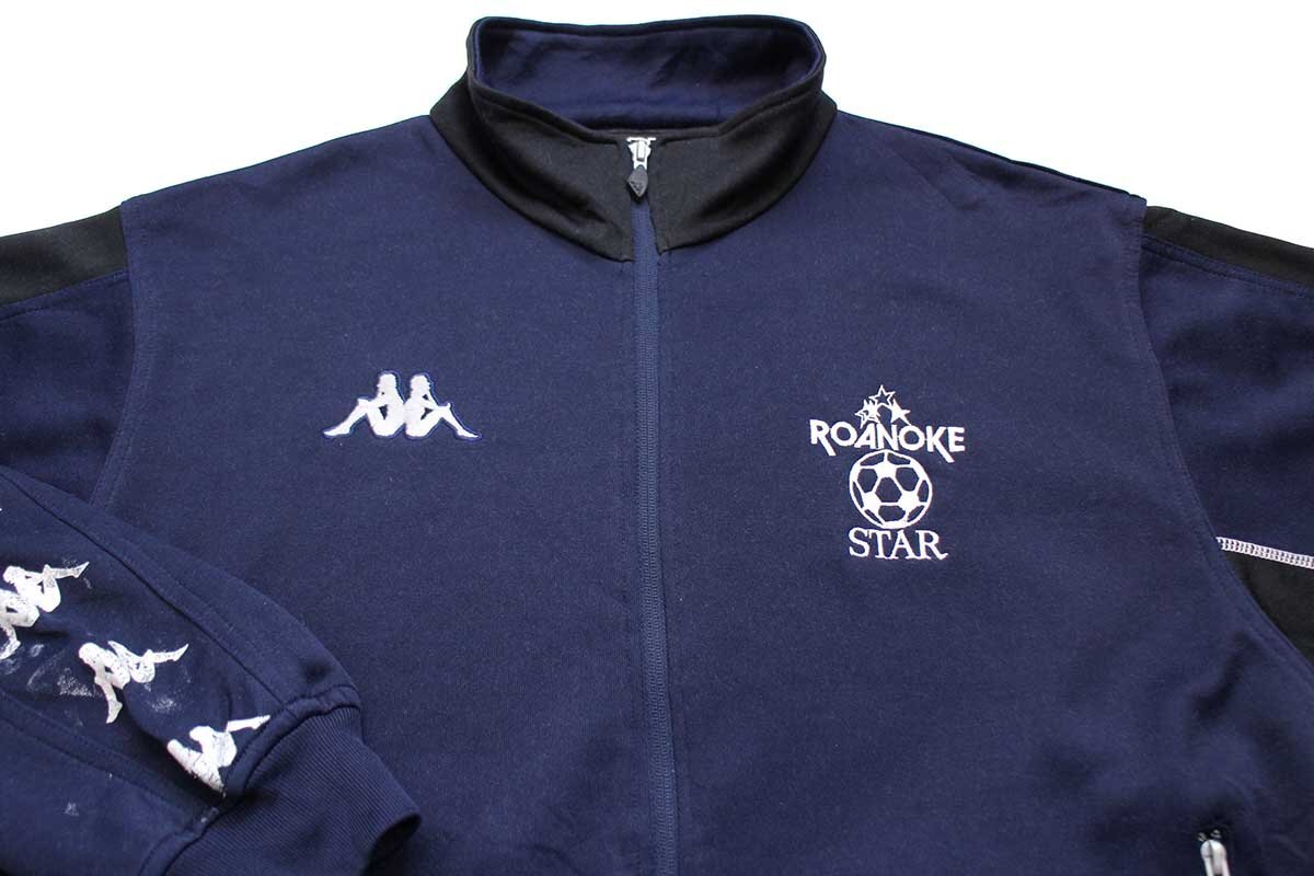 ★Kappa ROANOKE STAR サッカーボール 刺繍 USA ツートン トラックジャケット 紺×黒 L★ジャージ オールド スポーツ ロゴ ペンキ飛び