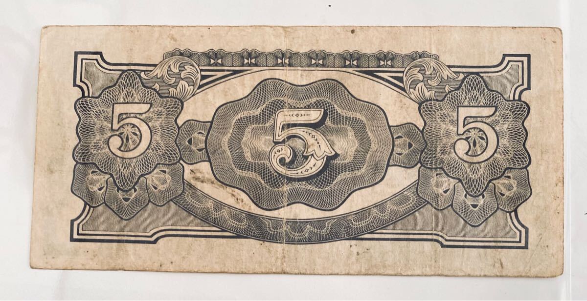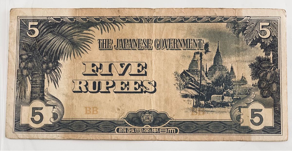② 大東亜戦争 日本政府によるビルマ方面 占領時 5ルピー 軍票 x 1枚