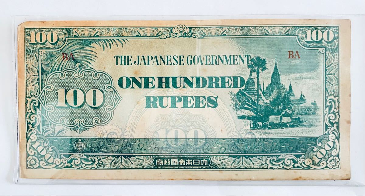 ① 大東亜戦争 日本政府によるビルマ方面 占領時 100ルピー 軍票 x 1枚