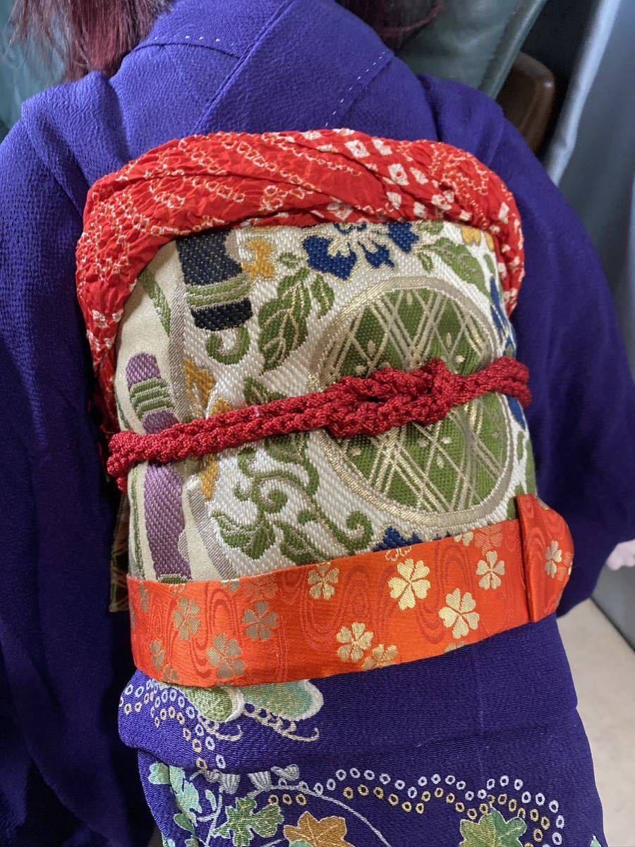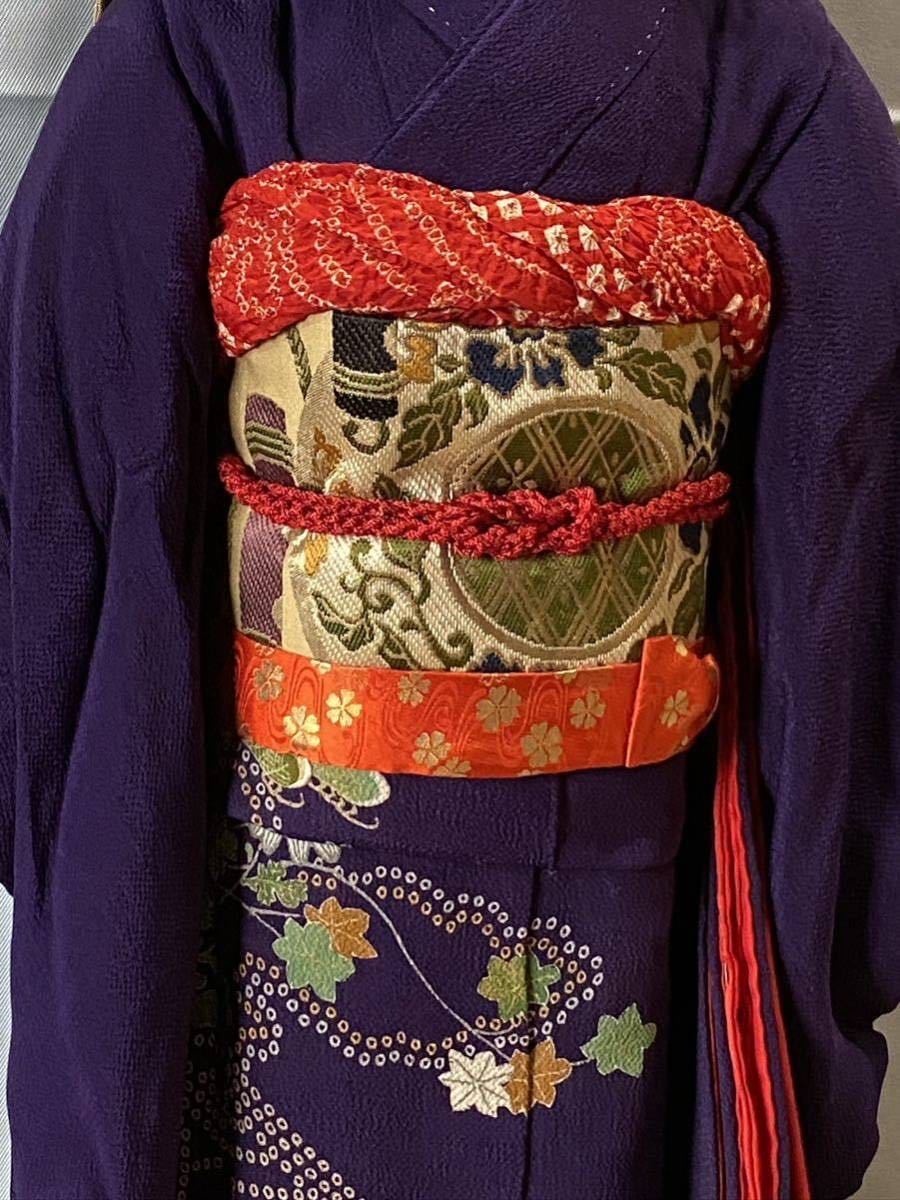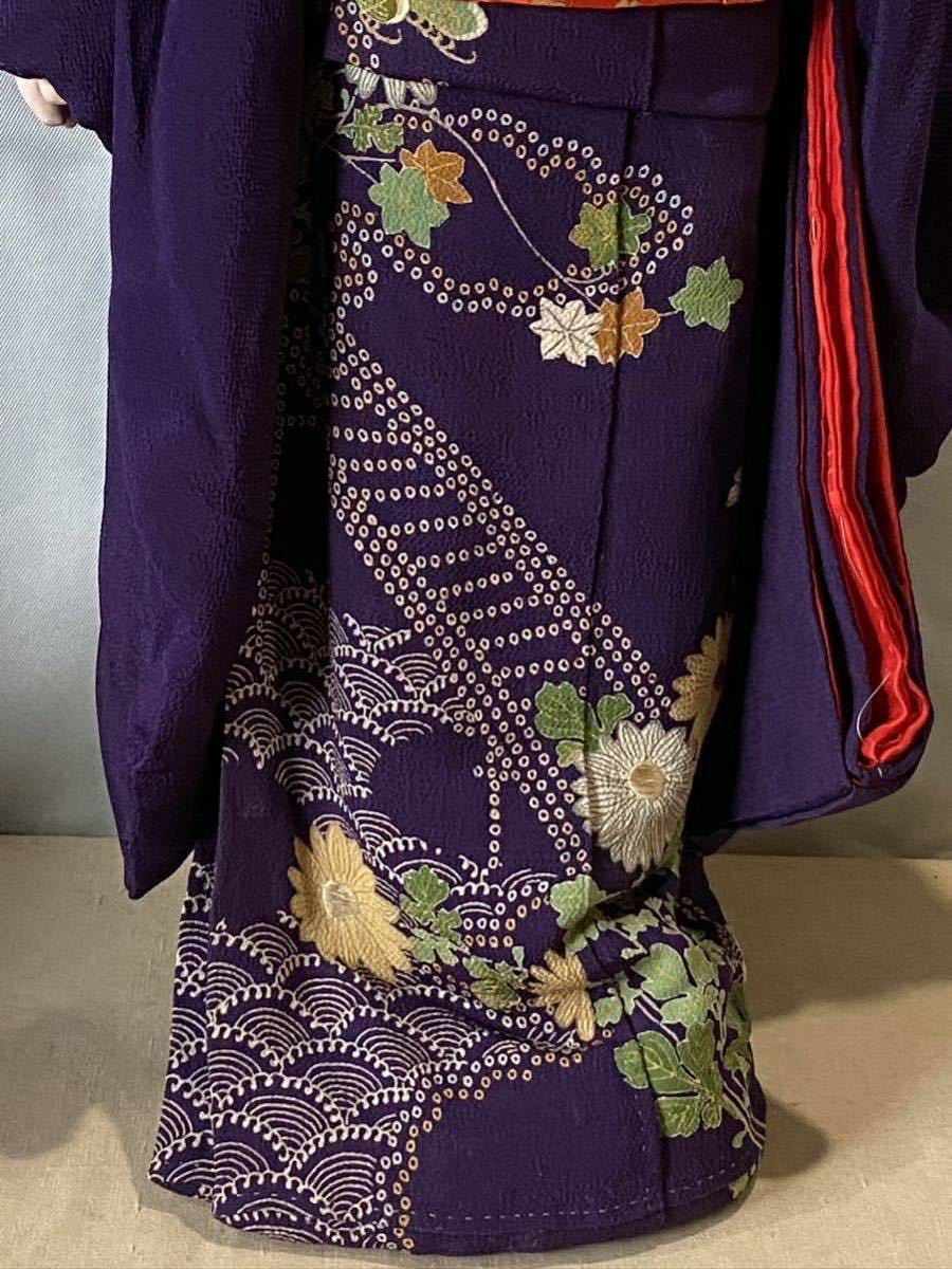 <縮緬地に手書き京友禅と手刺繍のきもの>