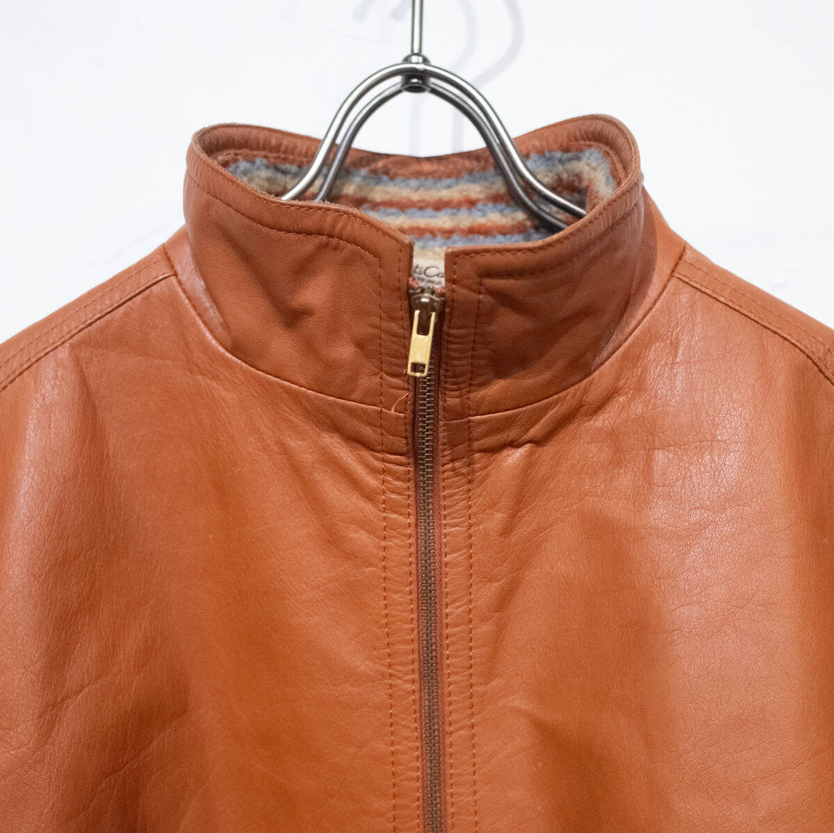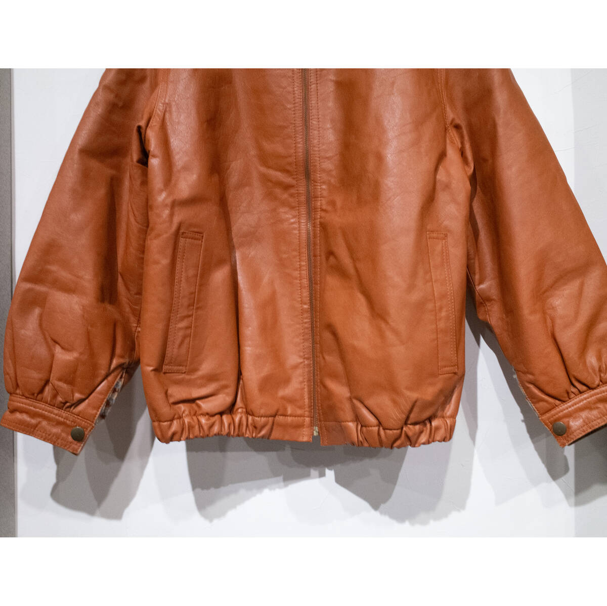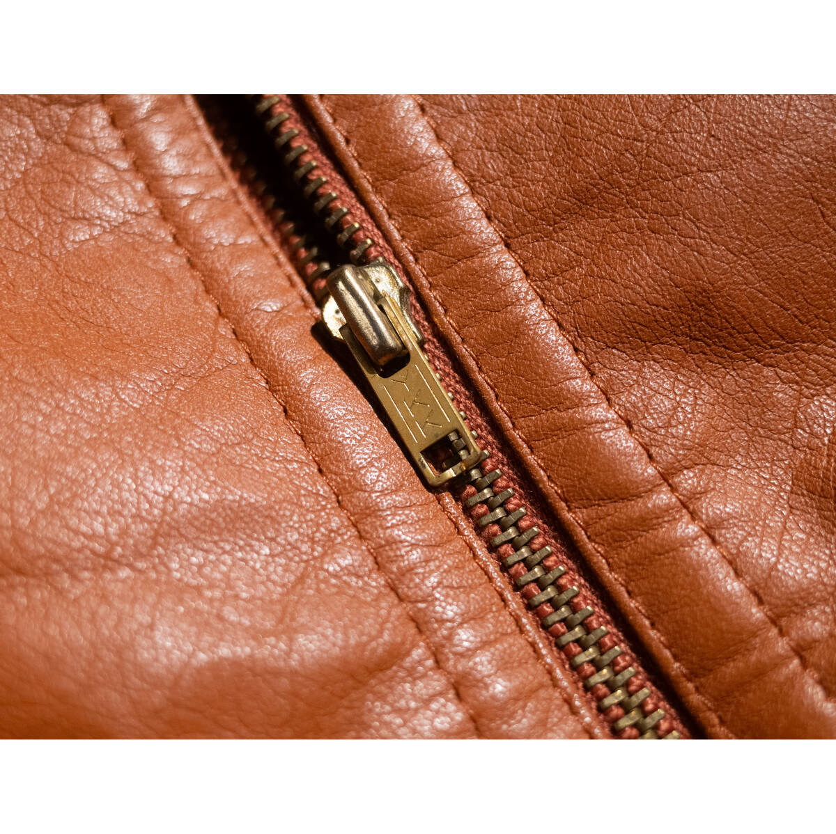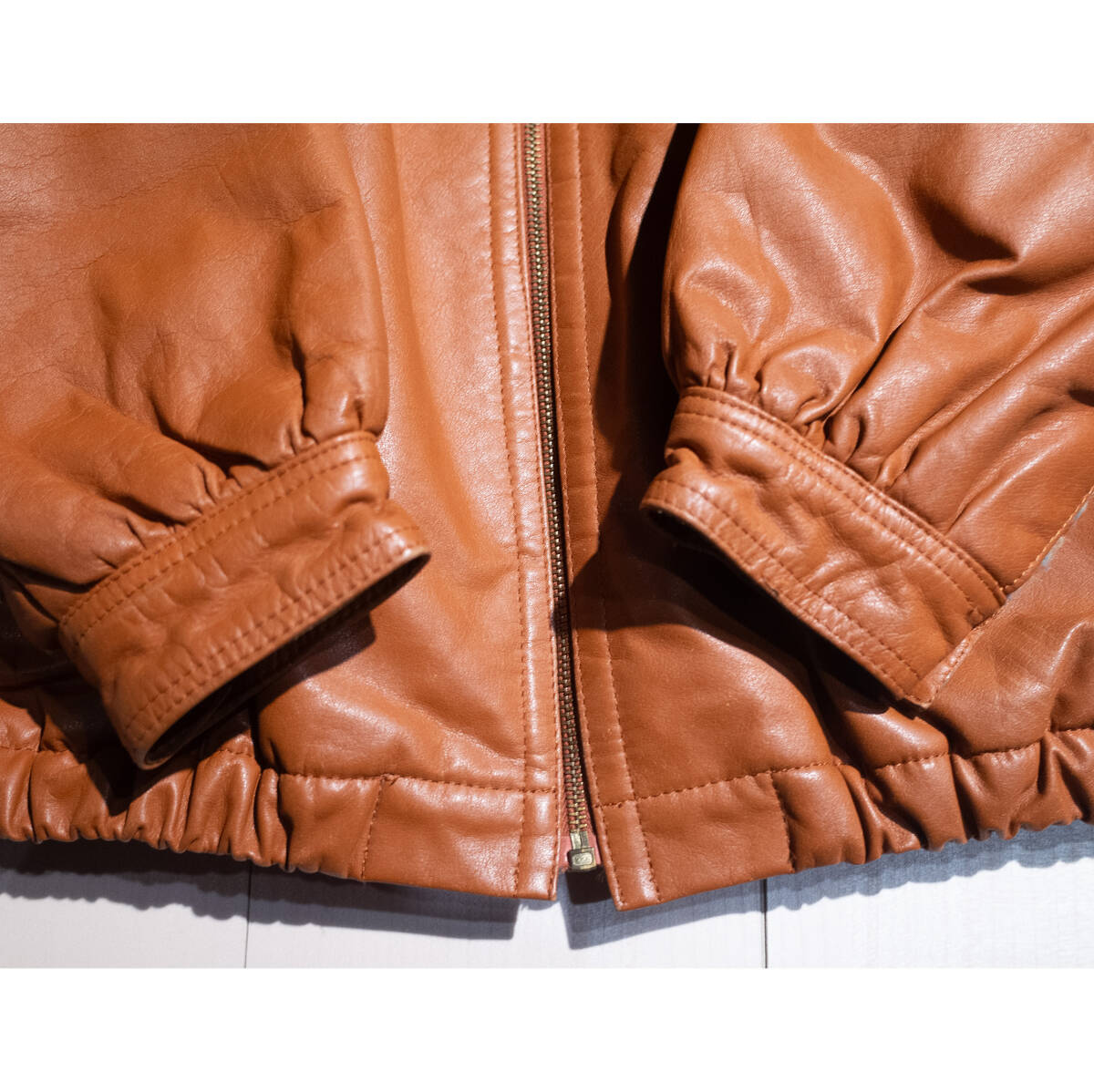 【商品】 90s エンジェルレザー ジップアップ ブルゾン ジャケット 革ジャン ブラウン 茶 キャメル 古着 日本製 VINTAGE