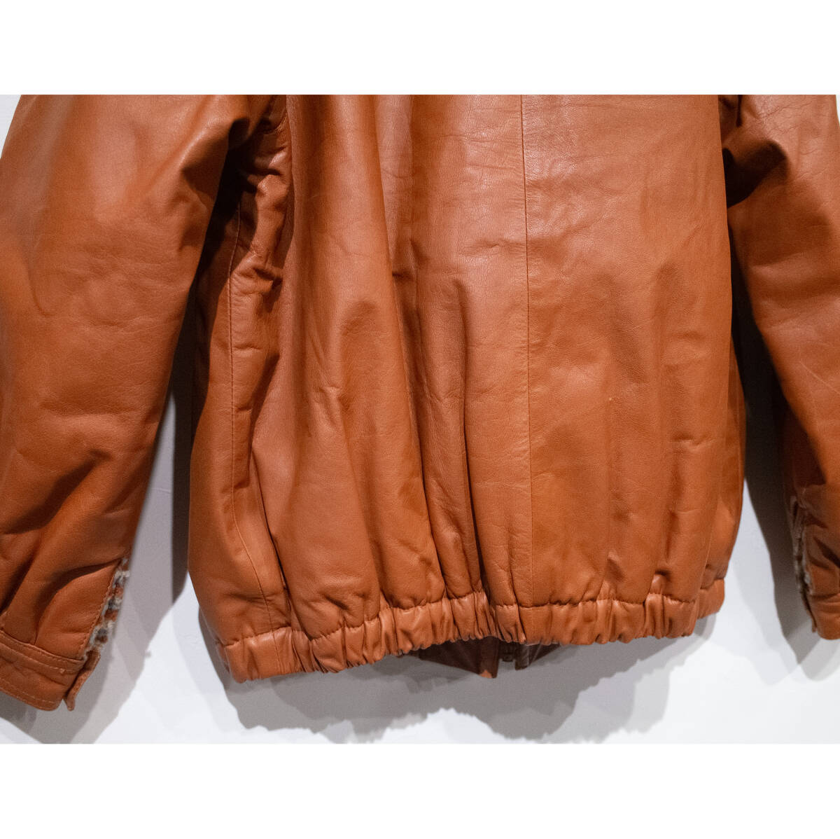 レディース 9 / 90s エンジェルレザー ジップアップ ブルゾン ジャケット 革ジャン ブラウン 茶 キャメル 古着 日本製 VINTAGE ボア 裏地