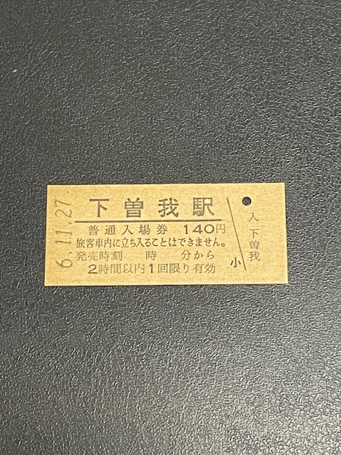 下曽我駅 普通入場券 平成6年11月27日 (管理番号72-139)