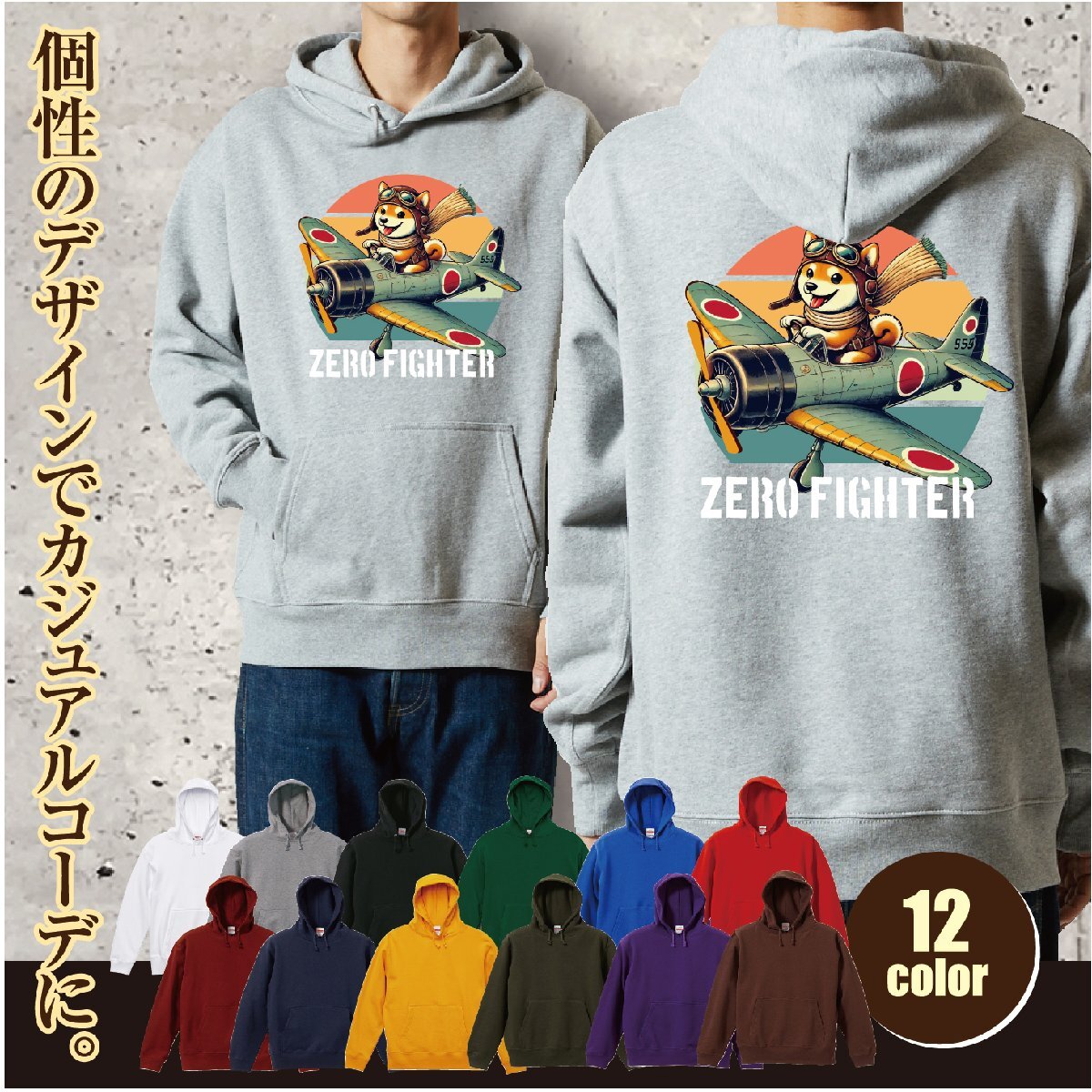 おしゃれなイラストが魅力のプルオーバーパーカーは、柴犬が零戦に乗ったユニークなデザインが特徴です。夕日を背景にしたこのイラストは、カジュアルなスタイルにぴったり。ゆったりとしたシルエットで、ふんわり暖かく、秋冬に最適です。紐付きのフードと便利なポケットが付いており、メンズ、レディース、子供用と幅広いサイズ展開で、家族全員で楽しめます。プレゼントにも最適な一枚です。●麺100%●【裏地】パイル●【アダルトサイズ】フード紐は身頃と同色●【キッズサイズ】フード紐はなし※ファスナーはYKK社製、シングルスライダー※加工用ファスナー付き※画像のサイズをご確認の上、ご注文をお願いします。※受注生産となるため、返品、交換はご遠慮ください。※商品画像ははめ込み合成であり仕上がりが
