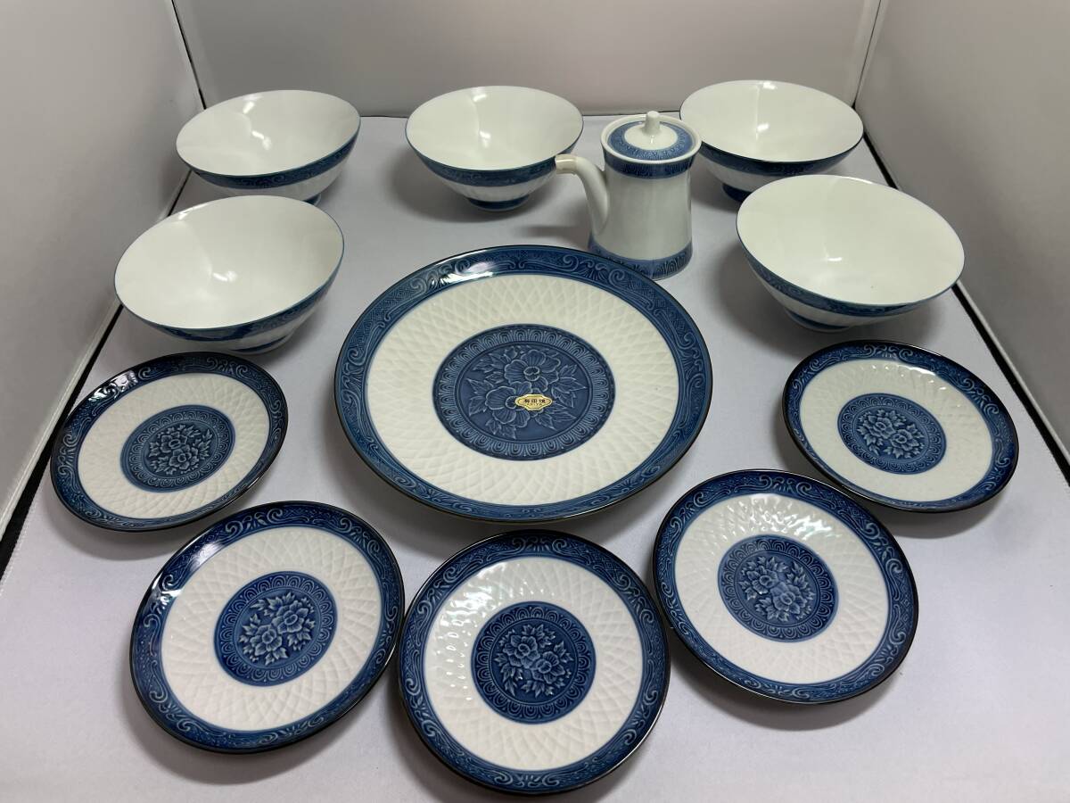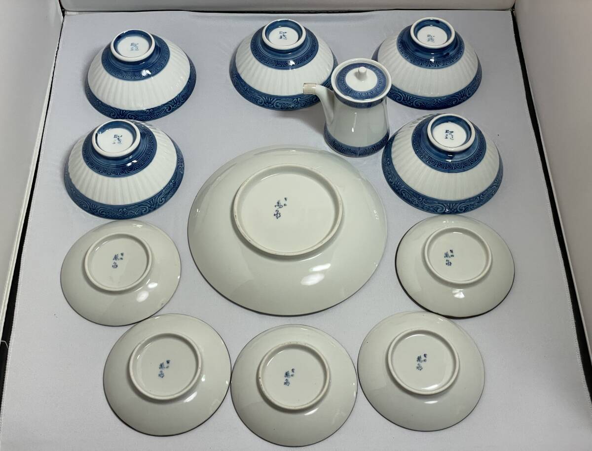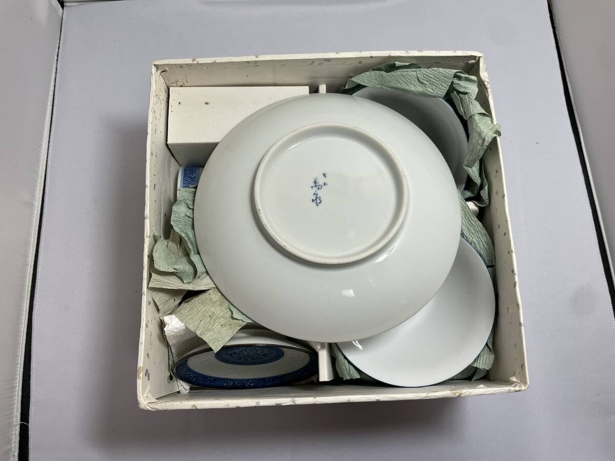 【未使用品・レトロ】★有田焼:萬永 和食器セット(中皿×1、茶碗×5、醤油皿×5、醤油差し×1)★