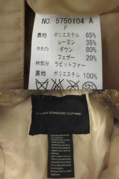 ダブルスタンダードクロージング ダブスタ DOUBLE STANDARD CLOTHING ダウンコート ラビットファー スタンドカラー コクーン ベージュ F