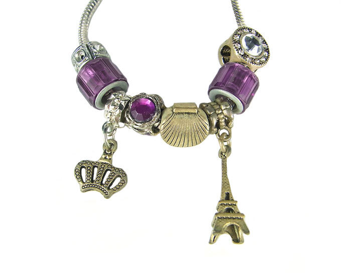 煌めくヨーロピアンブレスレット。エッフェル塔やクラウン(王冠)、シェル(貝)、ハートのモチーフにカラービーズが可愛らしくデザインされたチャ-ムは、自由自在に取り外しが可能。その日の気分や洋服に合わせてチャームを付け替え、ファッション感覚でアレンジが楽しめます。チャームはネックレスのペンダントトップ等にもOK。使い方次第で幅が広がるブレスレットです。※ブレスレットの留め具部分に爪を立て押し込むと留め具が開きます。※留め具を開ける際、チャームやビーズが抜け落ちる恐れがありますので注意ください。【素材】 合金 / シルバ-メッキ / カラ-ビ-ズ【サイズ】18cm【カラ-】パープル◆関連ワード◆レディース アクセサリー ブレスレット ヨーロピアン チャ-ム エッフェル塔 クラウン 王冠 貝 シェル ハート キラキラ クリスマス バレンタイン ホワイトデー 結婚式 誕生日 母の日 限定 通販掲載画像は可能な限り実物に近づけておりますが、ブラウザ環境により色合いの見え方に誤差が出る場合がございます。こちらの商品は店頭販売も同時に行っているため掲載中でも実店舗に在庫切れの場合ございます。何卒ご了承願います。