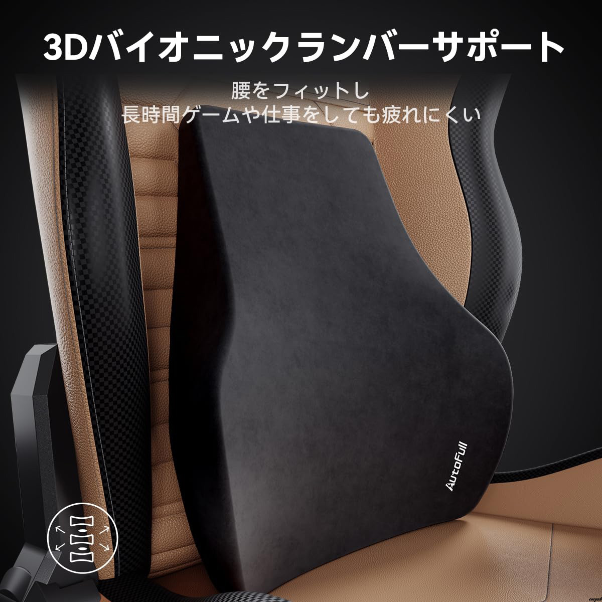 人間工学に基づいて設計されたヘッドレストとランバーサポートが、腰への負担を軽減し、背骨が自然な