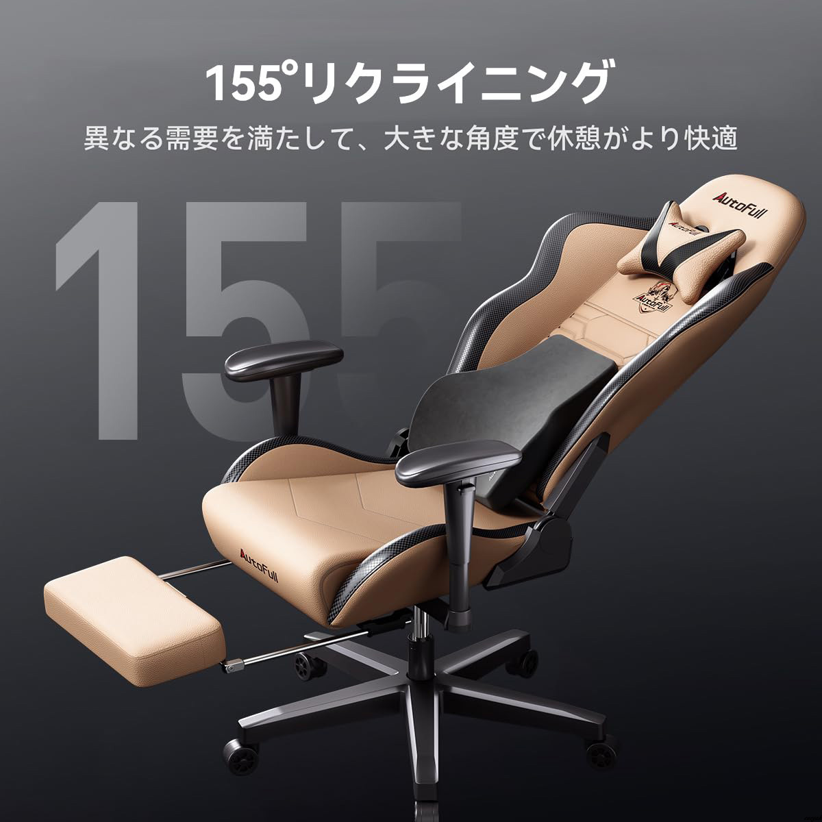 155°までリクライニングでき、オットマンを搭載しているため、休憩時にはリラックスしながら快適に
