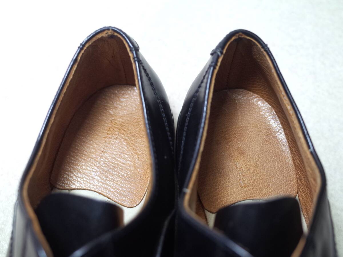 ソールが全く減っていませんので、未使用〜試着程度の着用頻度が極めて低いシューズと思われます。経年保管ならびに輸送等に伴うスレやキズ、シワ、スリキズ、スレ痕、アタリ痕、軽いヘコミ、左足ヒール付近に表面のザラツキ、左足の履き口にクラックなどございますが、その他の状態は大きなダメージもなく全体的に良好だと思います。