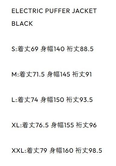 商品名:ENNOY ELECTRIC PUFFER JACKET BLACK カラー:ブラック サイズ:XL 状態:新品・未使用 |