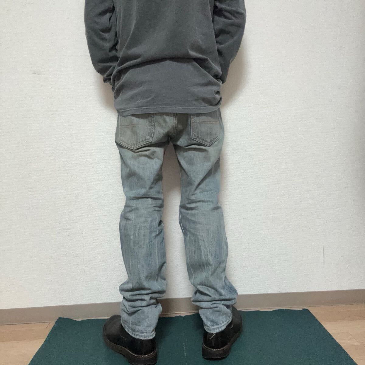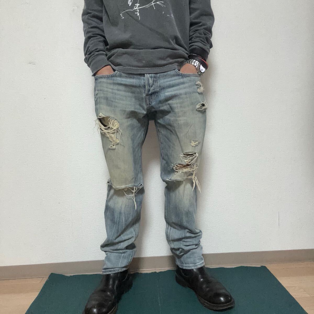 ブランドの中ではスキニーモデルですがタイトではないナチュラルなシルエットにビンテージ加工でこなれ感ある一枚です。