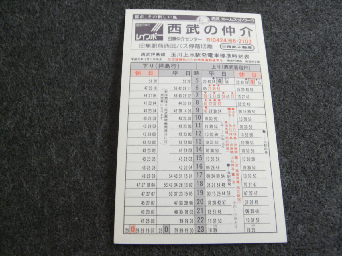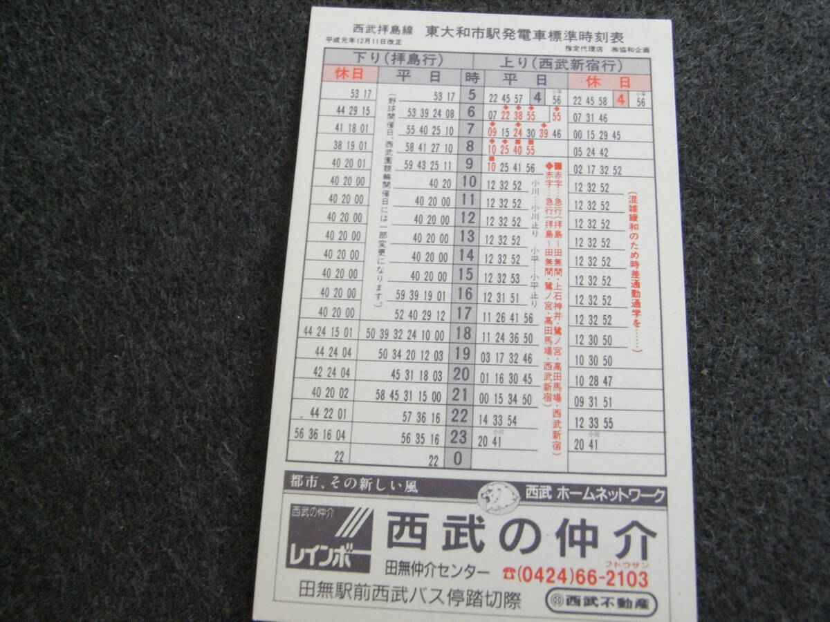 西武拝島線 東大和市駅・玉川上水駅発電車標準時刻表 平成元年12月11日改正 「西武不動産」版 西武鉄道時刻表