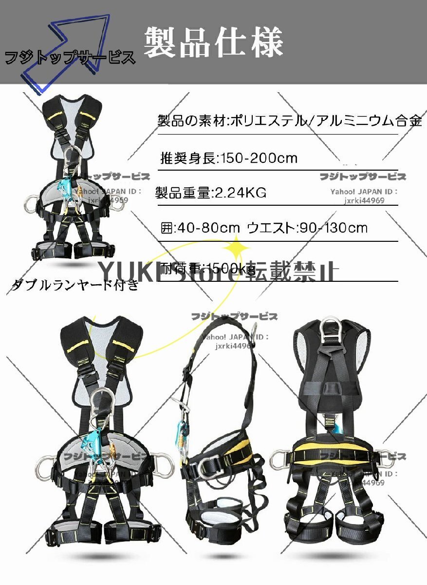 品質保証 安全帯 フルハーネス ダブルランヤード付き 使用可能質量 100kg 全身保護 落下防止 高所安全作業用