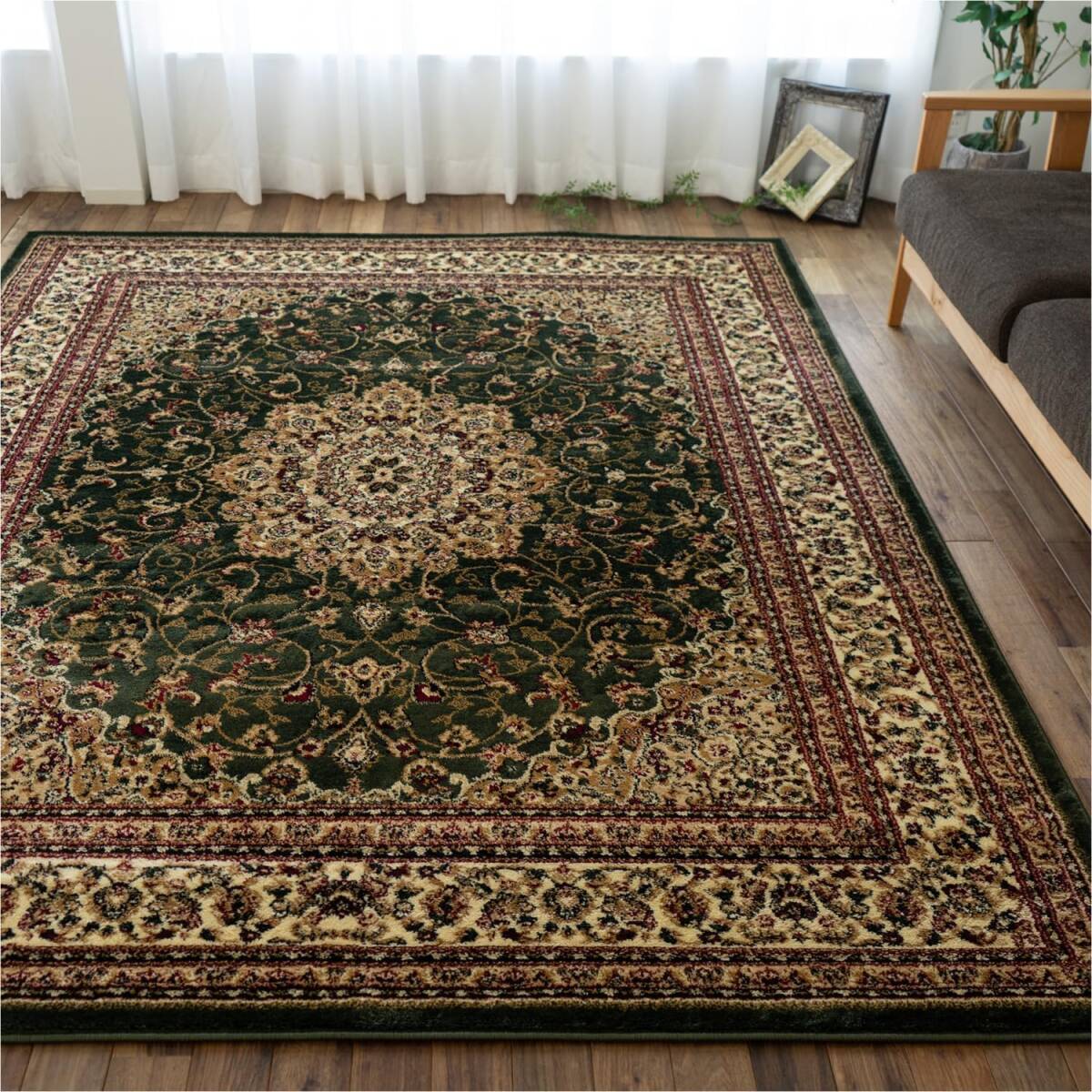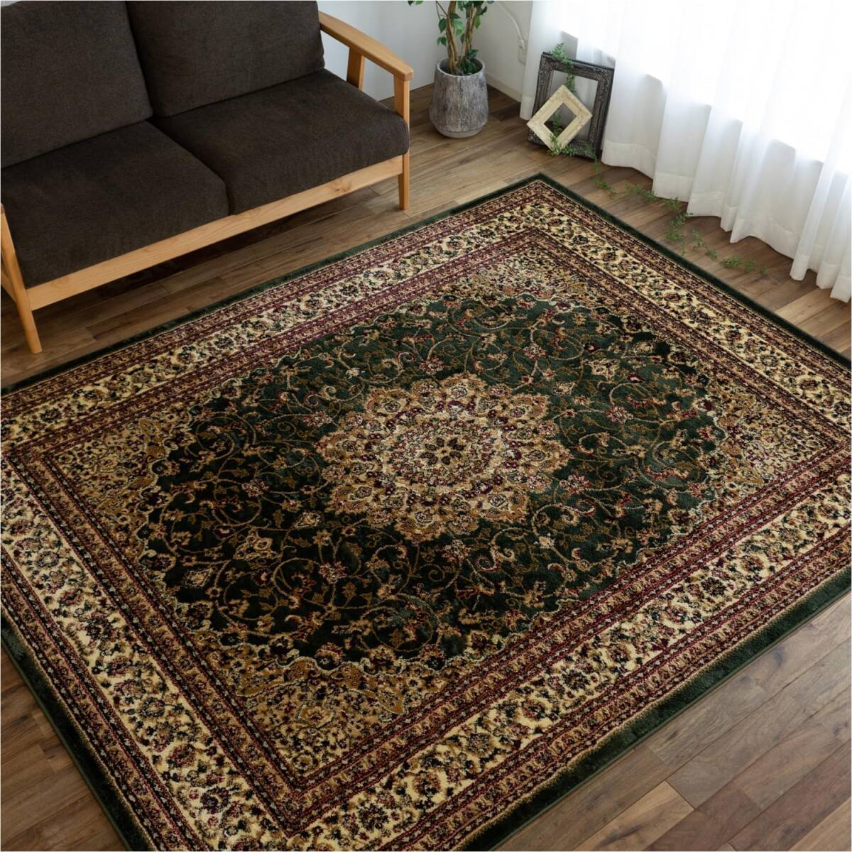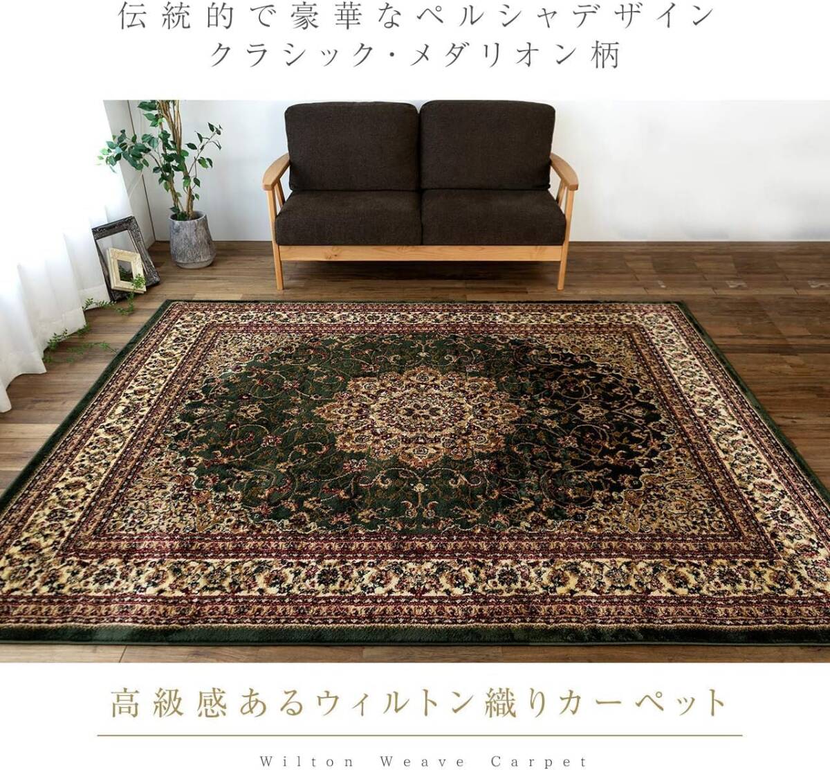 [送料込み] ラグ 絨毯 カーペット マット 340x340 8畳 ペルシャ風 グリーン ウィルトン織 トルコ メダリオン 高級 インテリア リビング