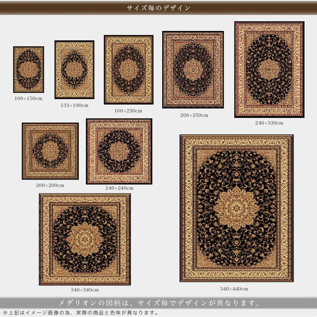 [送料込み] ラグ 絨毯 カーペット マット 340x340 8畳 ペルシャ風 ブラック ウィルトン織 トルコ メダリオン 高級 インテリア リビング