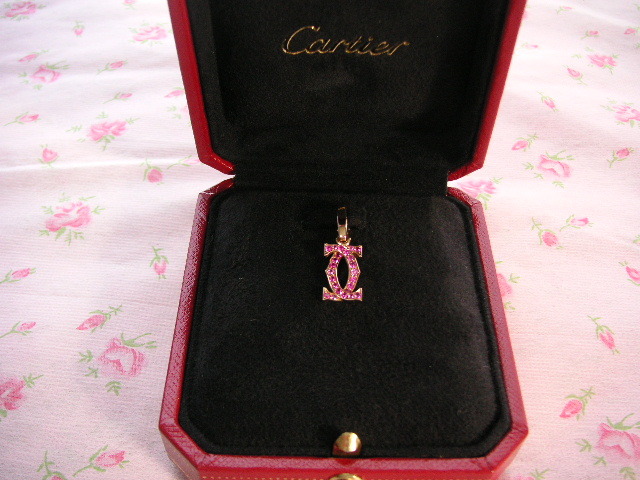 Cartier カルティエ 2C チャーム PG ピンクサファイア 750 ピンクゴールド 限定 K18 ピンクサファイヤ ロゴ ネックレス ペンダント トップ