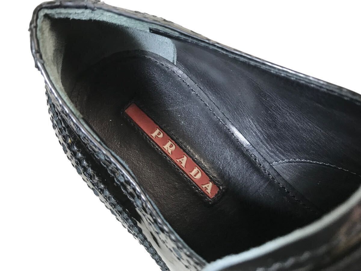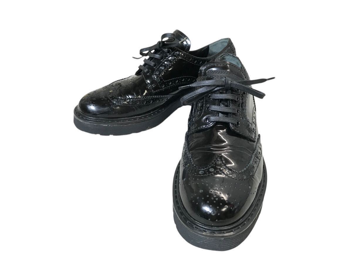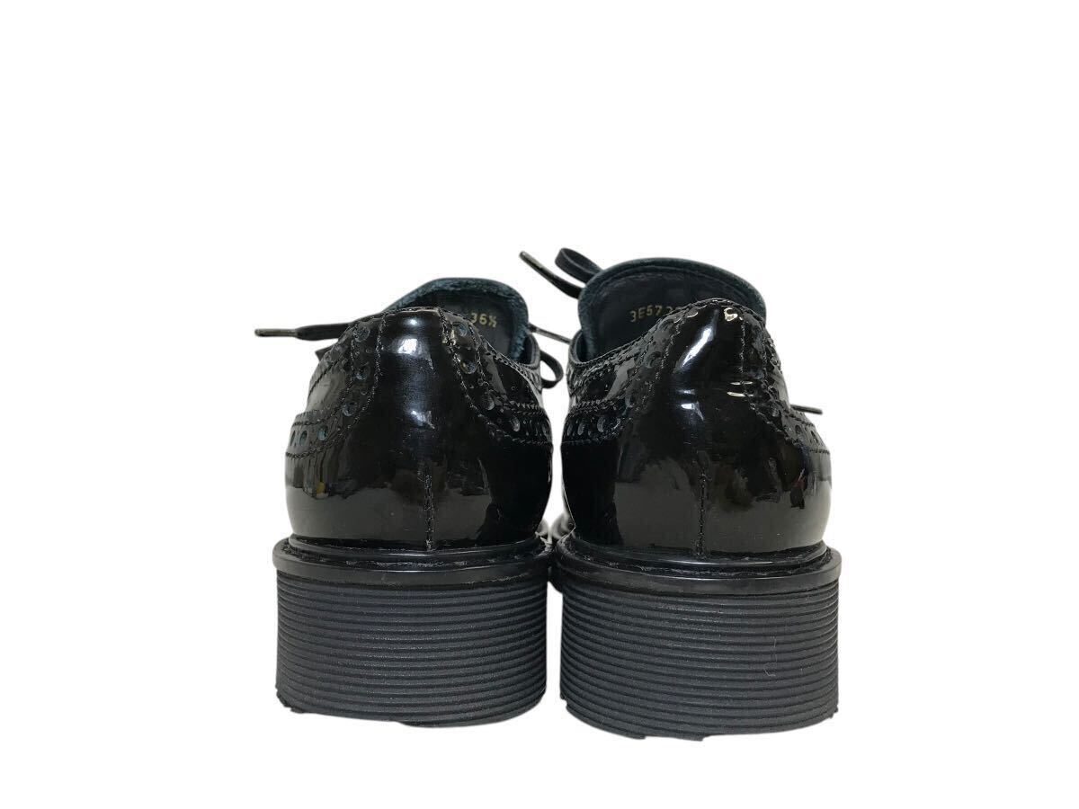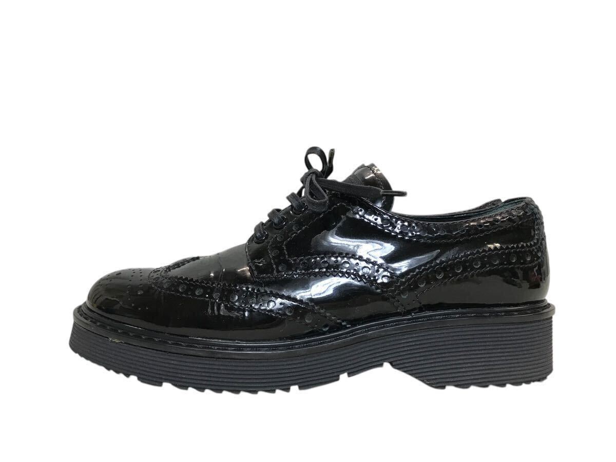(D) PRADA SPORT プラダ ウィングチップ エナメル シューズ 36.5 ブラック