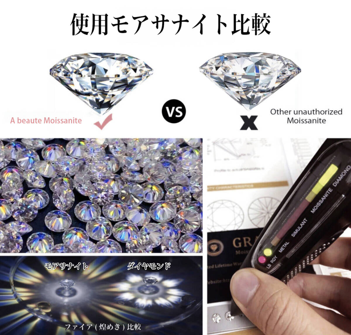 弊社では入手したモアサナイトを一点一点ルーペで確認し、色ムラや燻み・傷などが入っていないかをチェックし、信頼のおけるプロ用の最新『マルチテスターIII』を使用して、本物のモアサナイトであるという証明が出来たお品のみお届けいたします。