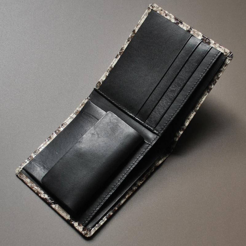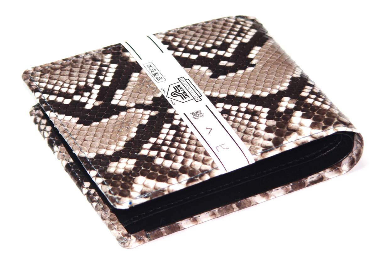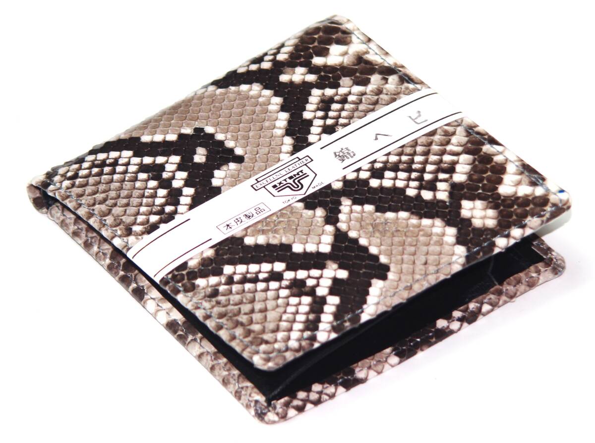 ●商品名:日本製錦蛇×牛革二つ折り短財布