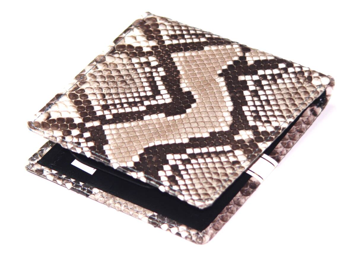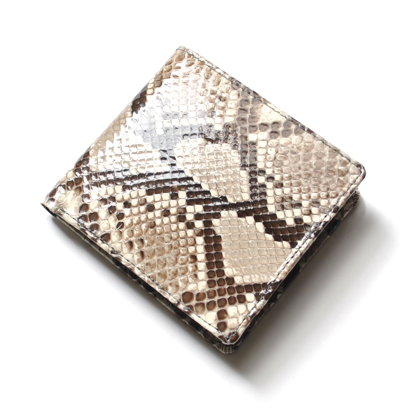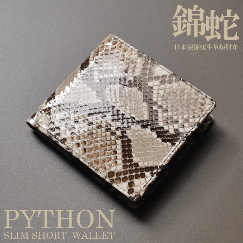 ・財運が上向くと言われる錦蛇革の天然の風合いを生かした金運祈願のショートウォレット。