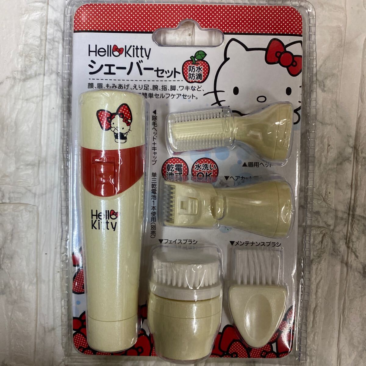 ハローキティ シェーバーセット セルフケア 防水防滴 乾電池式 水洗いOK メンテナンスブラシ付 除毛ヘッド フェイスブラシ ヘアカット用ヘッド 眉用