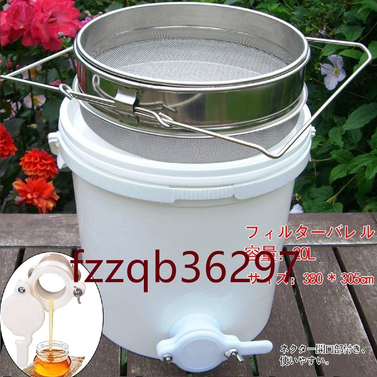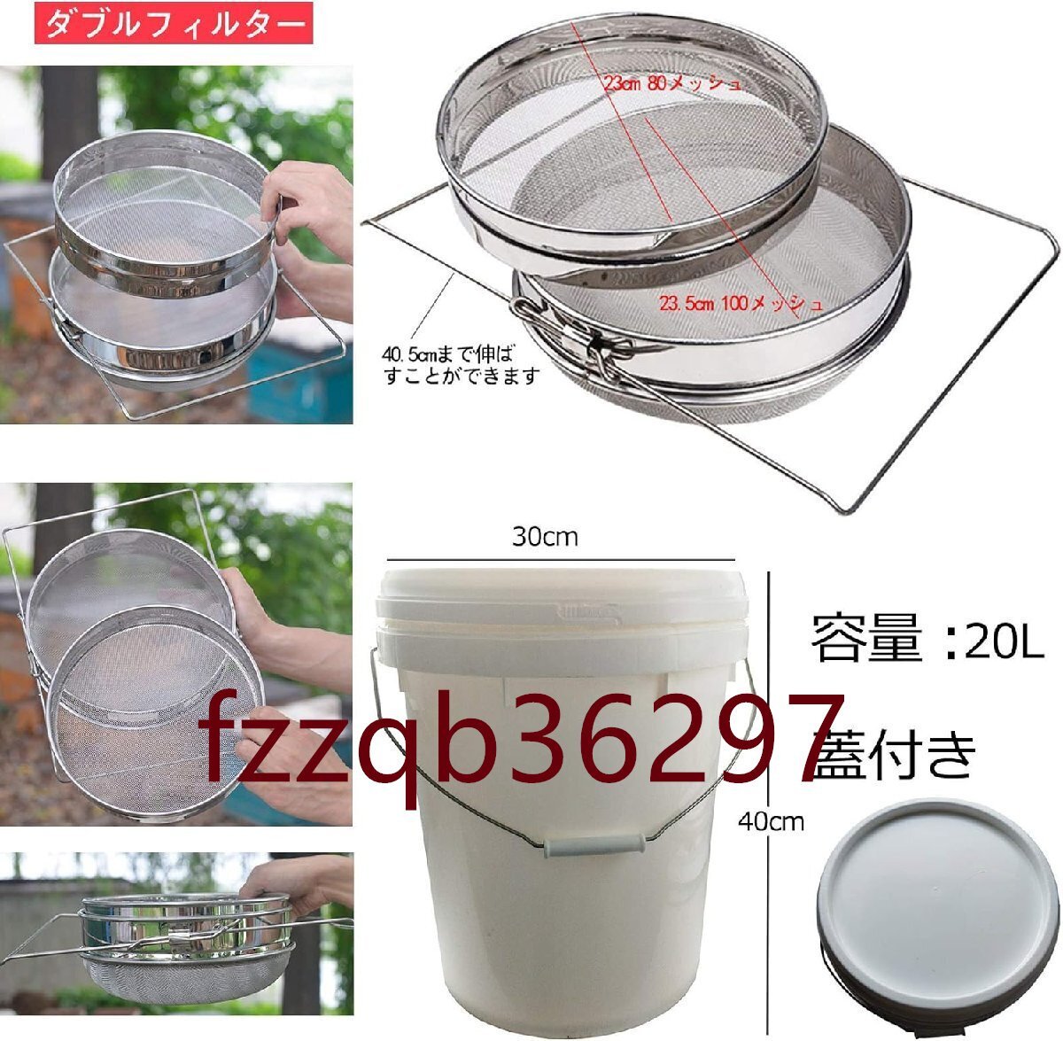 養蜂 器具 蜂蜜 こし器 ワックス はちみつ ろ過器 2重ステンレス ブラシ ふるい 園芸 20Lポリ 容器付き