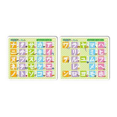 セット内容:練習ボード8枚(ひらがな2枚、カタカナ2枚、練習マス目2枚、すうじ1枚、ABC1枚)、専用細書きペン1本、リング付きペンホルダー1個