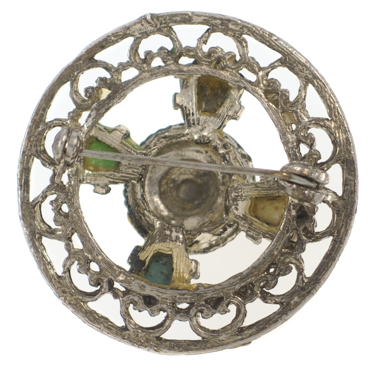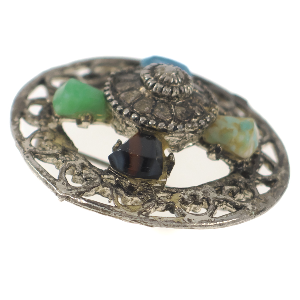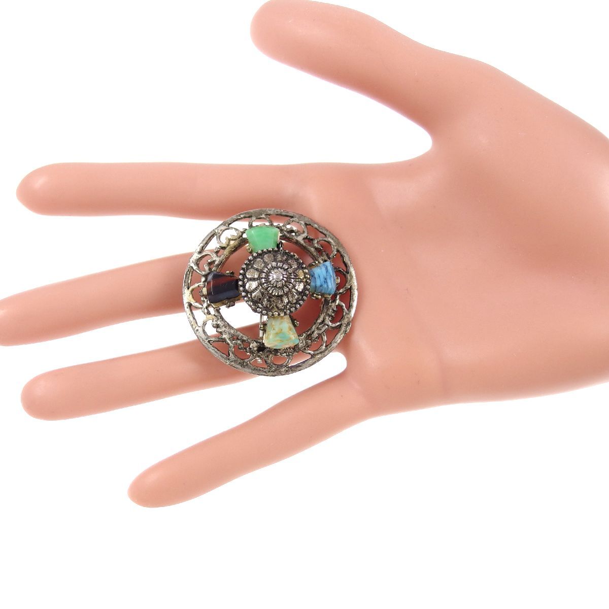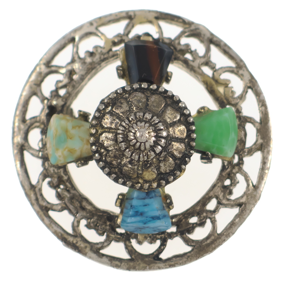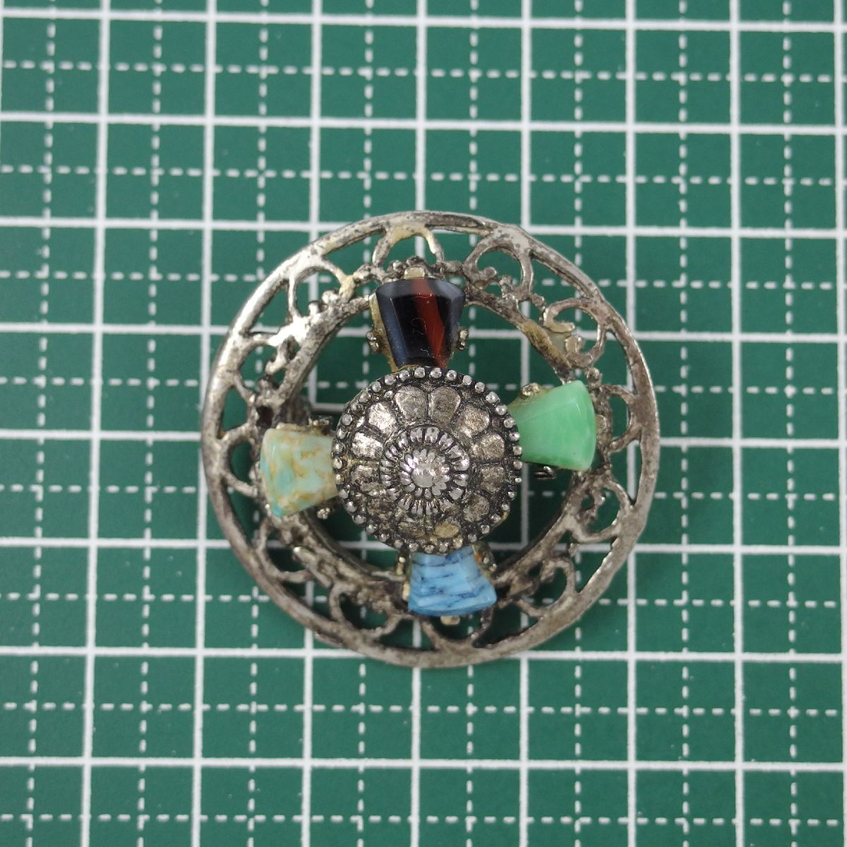 UK2885◆ ケルト十字 クロスモチーフ マルチカラーストーン 色石 英国 イギリス ◆ ヴィンテージブローチ ◆