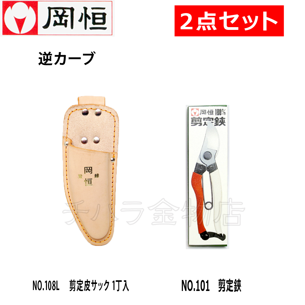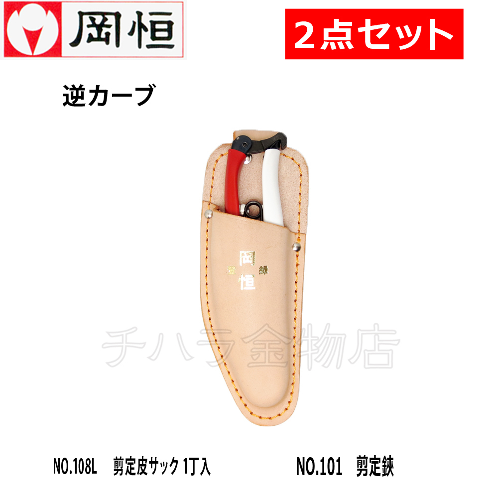 ■岡恒【okatsune】 No.101剪定鋏・NO.108L【逆カーブ】皮サック 2点セット!