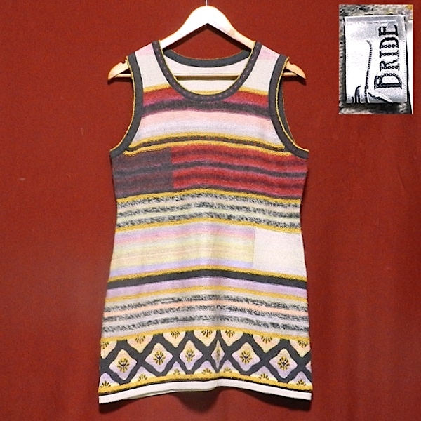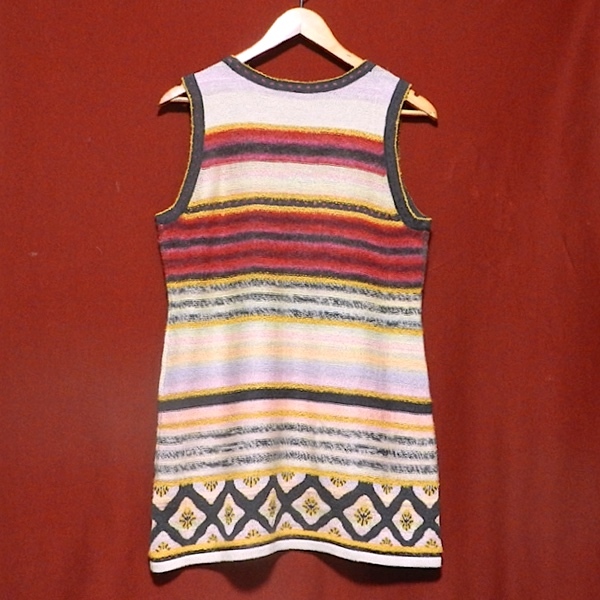 新品 JUNE BRIDE ジューンブライド ニット ベスト ノースリーブ チュニック エスニック 混色 総柄 F M 〜 L 未使用