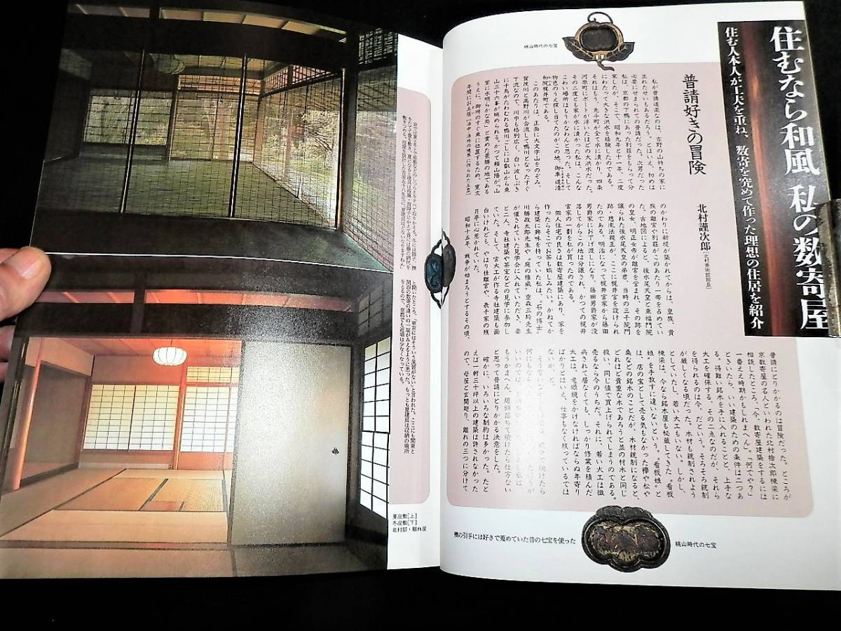 ■■『雑誌』・・・■■ ●●『芸術新潮』・・・●● **”(1989年10月号)”** ■■『特集』・・・■■ ●●『和風住宅』・・・●● ―”見るポイント・作るポイント”― **”約・60頁”** ★落語の与太郎は・おとっつあんに教わりながら・「壁 は砂摺り・天井は薩摩の鶉杢」・と家賞めの仕方を覚 えるが・今の私たちは日本人でありながら和風住宅の 基本を知らない。 和風住宅の魅力を肌で感じる機会がない。 いつかは作りたい和風空間のために・日本の風土の中 で長く育まれてきた究極の和風空間・数寄屋建築から ・その見どころ・賞めどころを学んでみよう。 ■発行日=1989年10月1日。 ■発行所=株式会社・新潮社。 ■サイズ=21×28.5cm。 ■定価=1000円+税。 ■状態=美品。 ●表紙に・多少の・キズ・ヤケが有ります。 ●本誌内に・多少の・ヤケが見えますが ●大きなダメージは無く ●年代的には・良い状態に思います。 ◆◆注意・・・◆◆ ★発行日より経年を・経て下ります。 コンディションに係らず・古書で有る事を 充分に御理解の上・御入札下さい。 ★神経質な方は入札をご辞退下さい・・!! ●全・160頁・・・!! ●特集の・・・!! ◆「和風住宅」・は・約・60頁。 ●探されていた方は・この機会に・・・!! ●以下・詳細をご覧ください・・・!! ◆掲載案内は・抜粋し掲載して下ります。 ◆掲載内容は・Q&Aより・問い合わせ下さい。 ◆数字記載は目視です・間違いは御容赦下さい。 ●数字の記載は目視です・間違いは御容赦下さい。 ■■■■■■■■■■■■■■■■■■■■■■■■■■■ ★★★★★★★★★★★★★★★★★★★★★★★★★★★ ■■『住むなら和風住宅・私の数寄屋』・・・■■ ★住む人本人が工夫を重ね・数寄を極めて作った理想の 住居を紹介。 ●●「普請好きの冒険」・・・●● **”北村謹次郎・(北村美術館館長)”** ◆襖の引手に好きで蒐めていた昔の七宝を使った・ 桃山時代の七宝・(2点)。 ★京では夏と冬とで座敷のしつらえをすべて取りかえる。 冬には障子、襖をたてて畳を敷き、夏になると建具は 葭簾・葭障子にかえて畳には籐の網代を敷きつめる。 母屋を設計した吉田五十八先生に・「夏の建具はどな いなりますねん」・と聞いたところ・「東京にはそう いう風習がない」・と言われた。 ここにも関東と関西の数寄屋の違いの一端がみえるよ うに思った。 もっとも夏の建具は収納場所をとるので、京都でも近 頃は少なくなっている。 ◆北村邸・隠れ屋・夏座敷。 ◆北村邸・隠れ屋・冬座敷。 ◆離れ屋・厠。 ◆離れ屋・厠の窓・外。 ◆離れ屋・厠の窓・内。 ●●「母と私・画家二代が丹精した理想世界」・・●● **”上村松篁・(日本画家)”** ◆門より玄関をのぞむ。 ◆玄関内部。 ●●「家普請は大きな・”遊び”」・・・●● **”梶川芳友・(何必館・京都現代美術館館長)”** ◆梶川邸・門。 ◆座敷の床。 ◆玄関。 ●●「侘寂夢・待庵を写す」・・・●● **”谷村良次・(金沢美術倶楽部社長)”** ◆加賀待庵・西壁の小窓。 ◆加賀待庵と露地。 ◆加賀待庵内部。 ■■『数寄屋とは何か?』・・・■■ ★和風住宅の究極・数寄屋―世界に例を見ない感覚的な この建築様式をどう理解するか。 多彩な材料・デザイン・精緻な技術を生み出してきた 数寄屋の歴史と考え方を掴む。 **”解説―中村昌生・(京都工芸繊維大学教授)”** ●『自由なデザイン・数寄屋』・・・● **”Q&A・6問”** ★数寄屋建築というと・何か非常に高級なもの・難しい ものというイメージがあって・ 取りつき難い感じがしてしまうのですが。 ★お金をかけた家の例として・総檜造りなどとよくいい ますが・全部檜でつくった方がやはりいいのですか? ★他・・・・・。 ●『書院造』・・・● ―”書院造と数寄屋造”― ◆園城寺・光浄院客殿上座の間。 ◆書院造・(図)・[配置各部名称]。 ●『数寄屋造』・・・● ―”数寄屋造”― ◆表千家・家松風楼座敷。 ◆数寄屋造・(図)・[配置各部名称]。 ●『数寄屋の始まり』・・・● **”Q&A・5問”** ★利休が最初に数寄屋建築といわれるものをつくったの ですか? ★数寄屋造は・具体的には長押を取り去ることから始ま ったといっていいですか? ★他・・・・・。 ◆数寄屋デザインの始まり・残月亭。 ●『数寄屋・その幅広さ』・・・● **”Q&A・4問”** ★先程・利休の座敷にはちゃんとした書院があり・残月 亭という数寄屋デザインの先駆ともいえる座敷があり ・また茶室もあったということでしたが・屋敷全体と しては数寄屋とはいえない? ★今でも・一つの数寄屋建築の中で真・行・草の展開が あり得ますか?。 ★他・・・・・。 ―”真・行・草の展開”― ◆東京・瀬川邸。 ◆京都・照古庵。 ◆京都・堀内邸。 ■■『数寄屋技術の粋拝見!』・・・■■ ―”犬山・暫遊荘”― **”直線的構成で格式を表わす書院”** ◆上部を吹き寄せ桟にしてリズムを生む障子。 ◆杉と檜の角材の面をきちんと揃えた床柱と長押の 構成。 手のこんだ釘隠金具。 