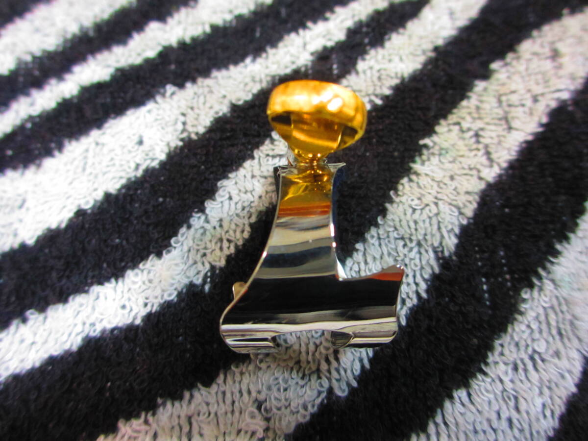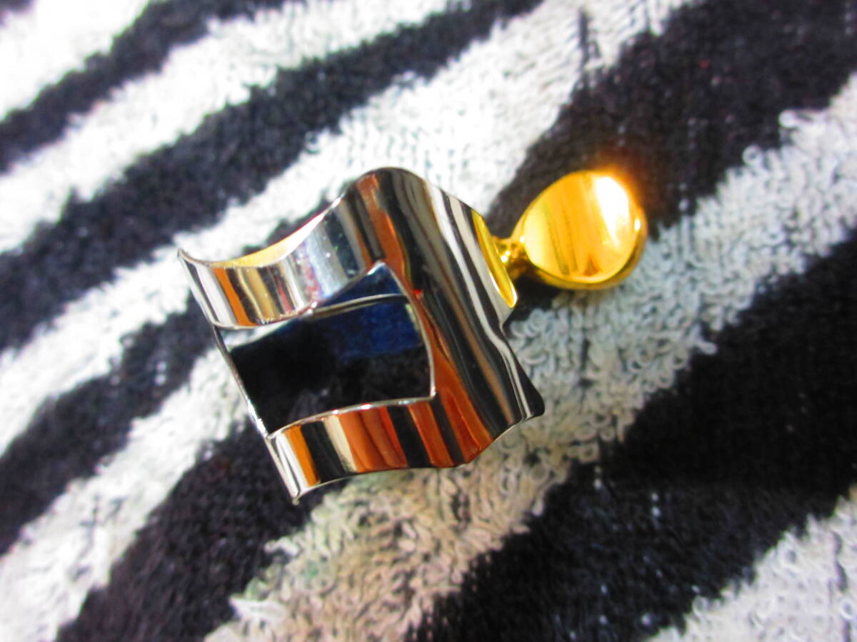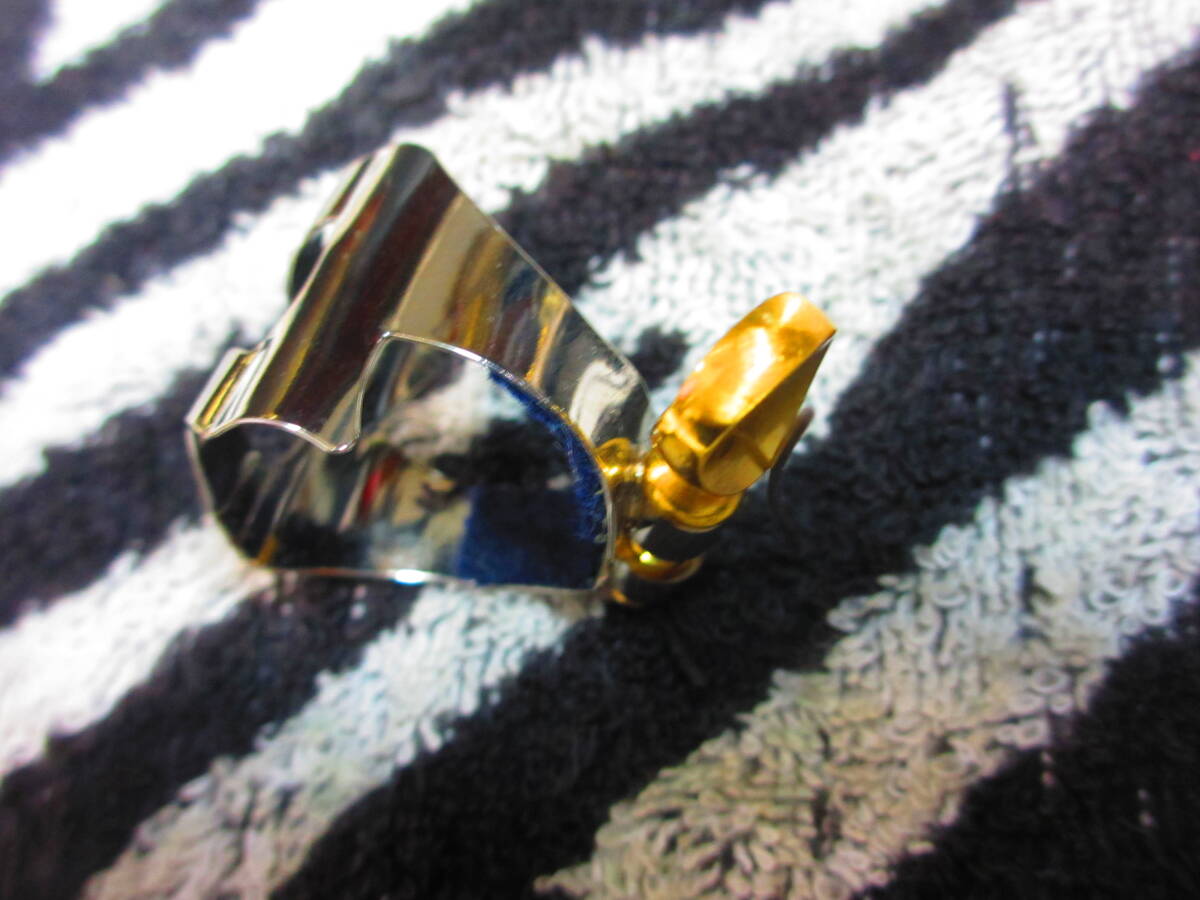 ・リバイユスタイルの奇抜なデザインのリガチャーでメッキくもり見られますが厚めのボディーで変形無く良好なコンディションです。オリジナルのヘビースクリュー搭載でセルマー2本ネジタイプより温かいサウンドで程度な抵抗感もあり、吹奏楽からポップスまで幅広く対応できるリガチャーで、フェルトのスペーサーもついてるので多少細身のラバータイプも大丈夫です。(セルマーS80、S90、ヤナギサワ、ヤマハ、メイヤー、バンドレン、バークレーソリスト等試奏確認済)