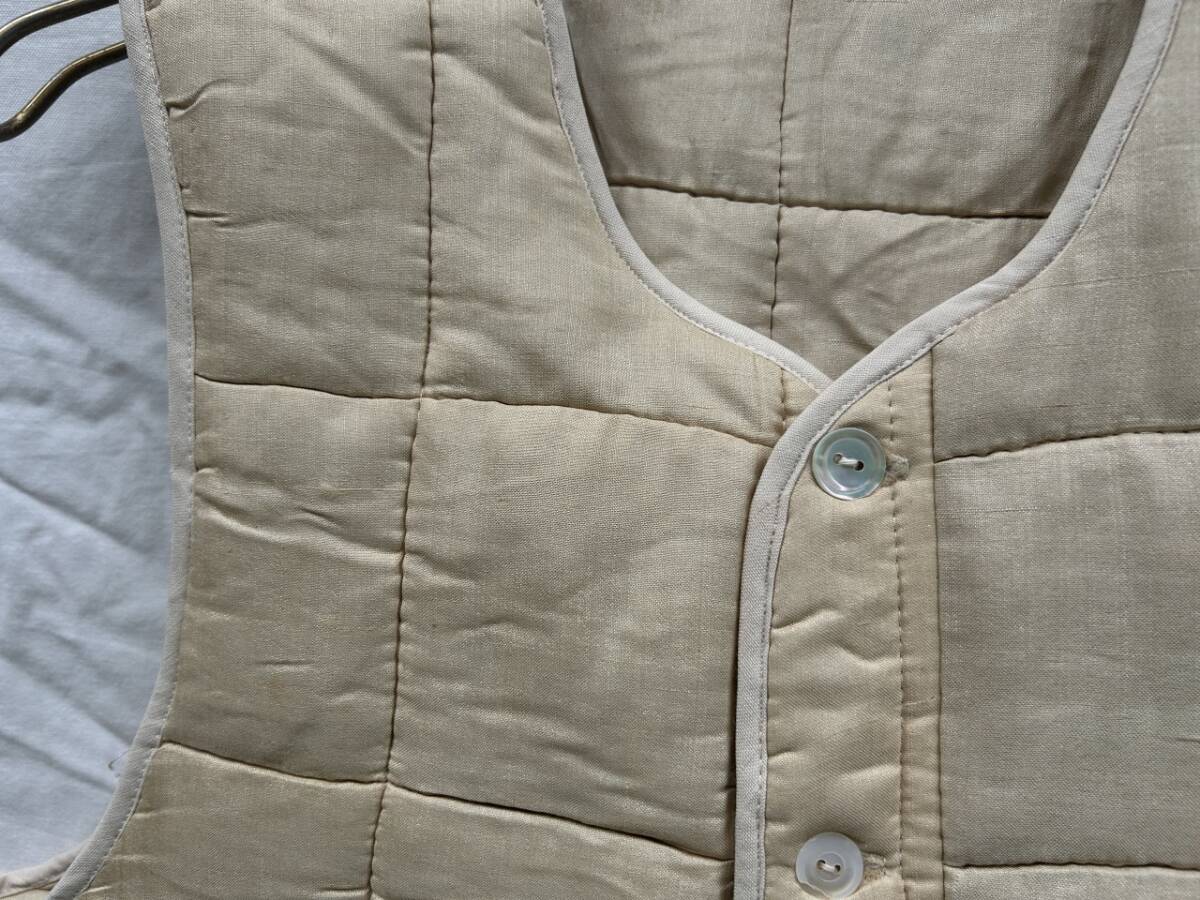 - 綿入り ベスト シルク 絹 シェルボタン 日本の古い服 ジャパンヴィンテージ JAPAN VINTAGE 昭和 レトロ 30s40s50s -