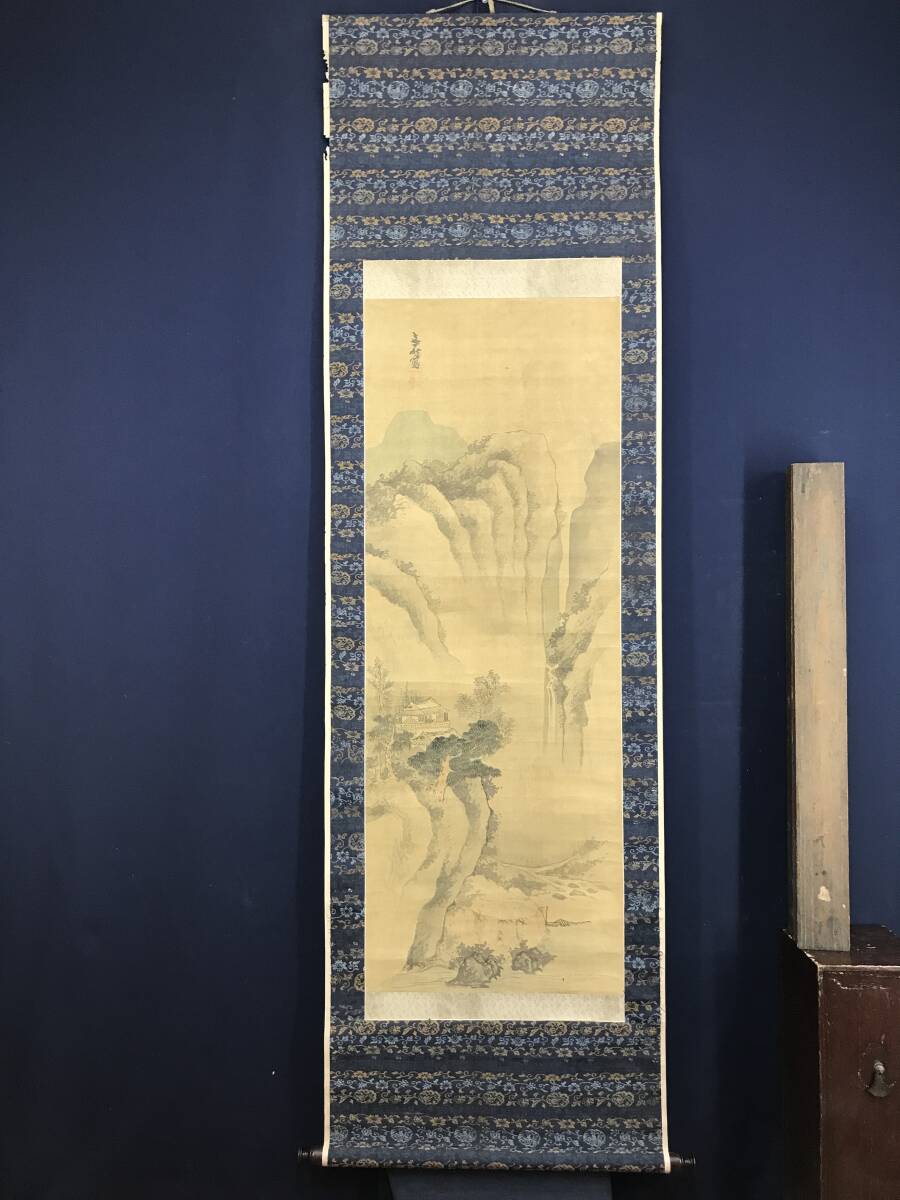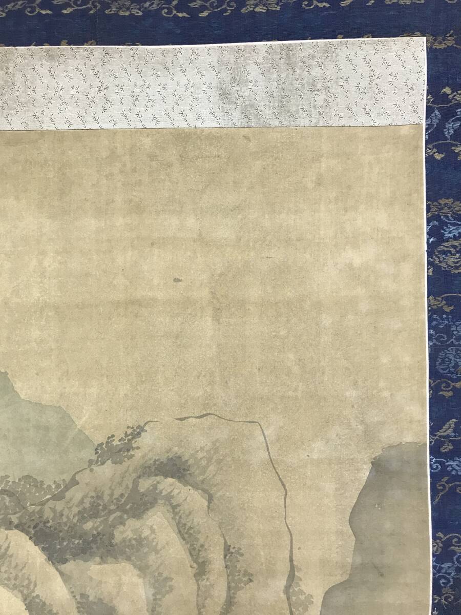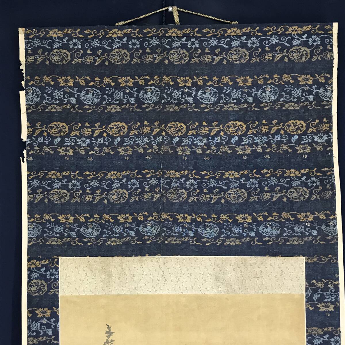 【作品状態】 本紙は絹本です。本紙は時代感あり、薄汚れ、汚れシミ、巻シワあります。表装は天の左端に虫穴、欠損あります。