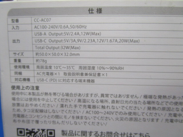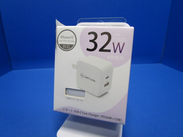 CellCube USB-C×1、USB-A×1 2ポート 急速充電器(白)Fast Charger (12w + PD20w) CC-AC07-WH ホワイト USB PD Power Delivery 対応