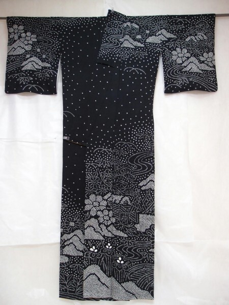 紗綾型地紋の紋綸子、黒地に白の絞りで、茶屋辻文様が表された付け下げです。 庵や流水、菊や菖蒲や紅葉や笹や露草や松などの四季の草花です。 モノトーンでシックです。 正絹、袷仕立、広襟、手縫い。 ごくごくわずかな着用シワがあるのみ、難のない美品です。 着物寸法(数字はcmです)、寸法の後につく()内の+数字は、サイズ直しの際に縫い代から伸ばせそうな長さ(+●cm)です。 身丈162(+0) 裄丈67(+2~5) 肩巾34.5(+0.5) 袖巾32.5(+1.5~2) 袖丈47.5(+3) 後巾28.5 前巾23.5 オクミ巾14.5 内揚 前身頃0 後身頃2.5 ※縫い代や縫込みは手探りのため誤差がでます。ご了承ください。 ![]() 以下の追加画像は、PCでの最適色調・最適サイズです。 スマホの場合は若干見え方が違います。また必ず拡大して隅々までご覧ください。 エラーで見られないときは入札せずにお知らせください。 ![]() ![]() |