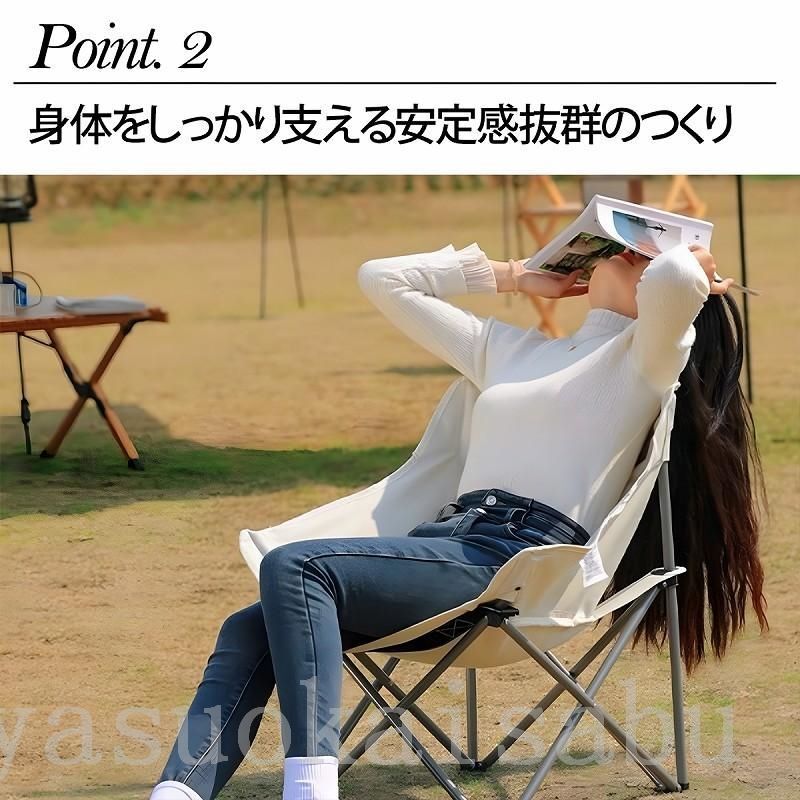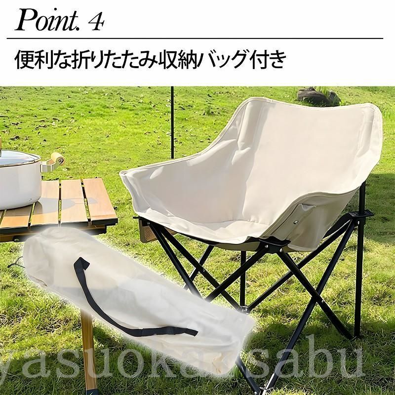 アウトドアチェア キャンプ椅子 折りたたみ 軽量 ムーンチェア キャンプ用 収納袋付き レジャー BBQ 釣り 屋内 屋外 持ち運び便利 簡単組み