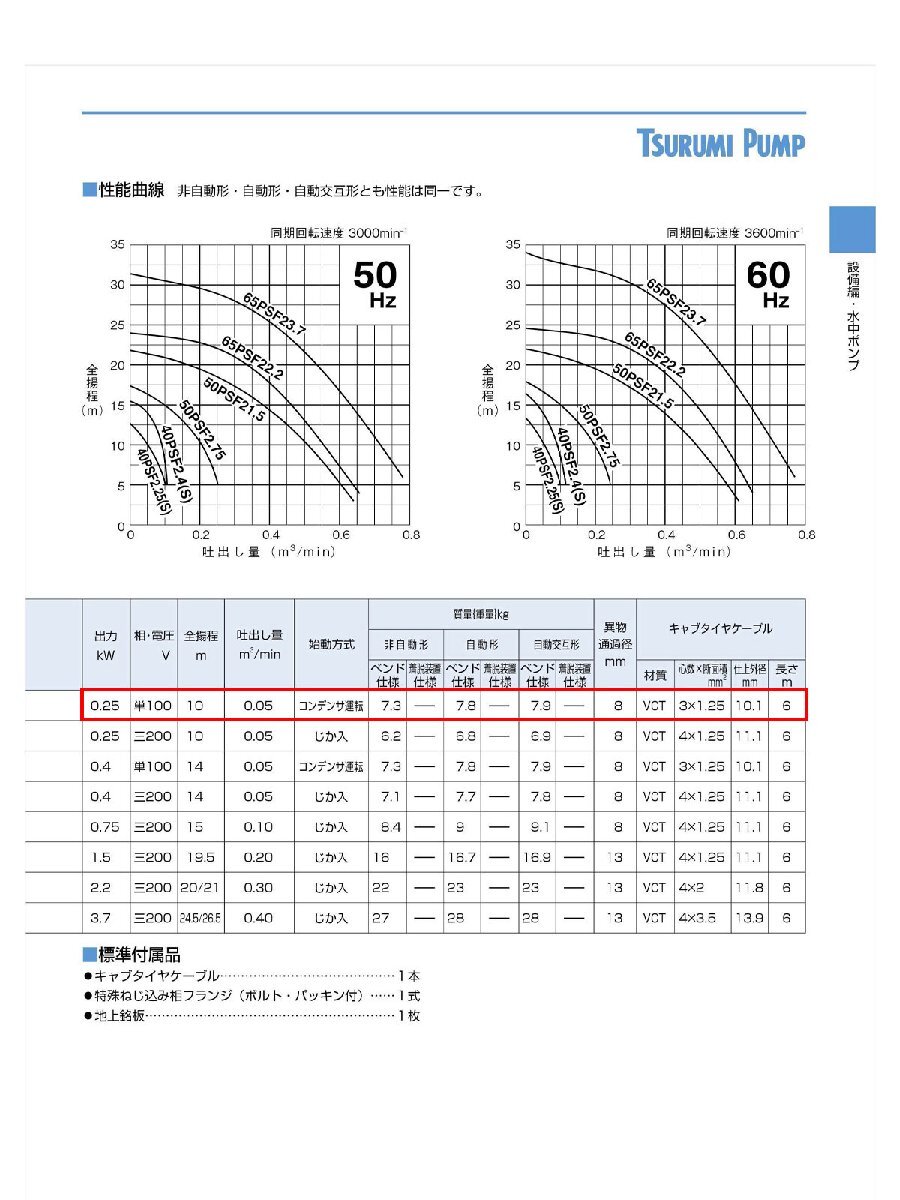 【代引不可】鶴見製作所 ツルミポンプ 水中うず巻ポンプ PSF型 バンクスシリーズ 自動交互形 口径40mm 50Hz 東日本用 単相100V 出力0.25kW