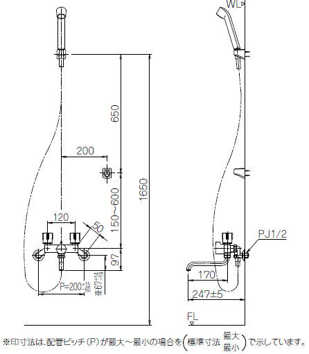 逆止弁付 13ミリ 吐水口長さ170ミリ