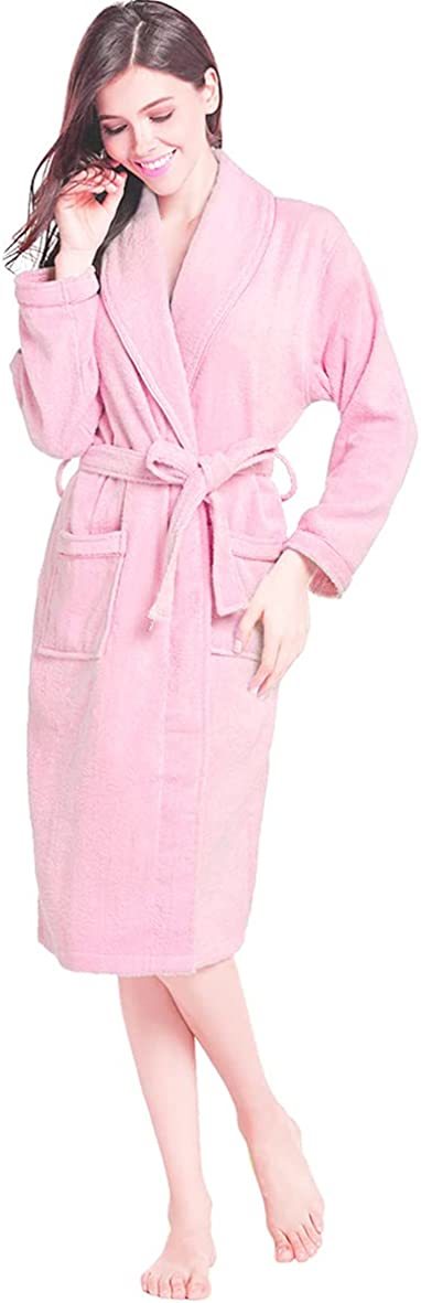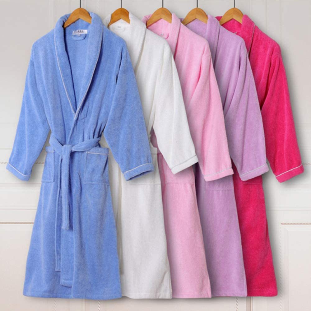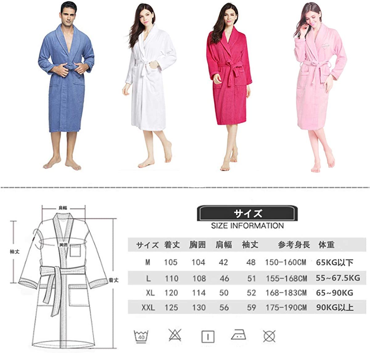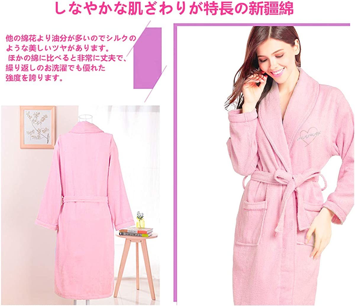 艶 ピンク 上質のタオル生地 ポケット付き M リッチ感 コットン 保温性 メンズ レディース 速乾性 ガウン バスローブ ルームウェア