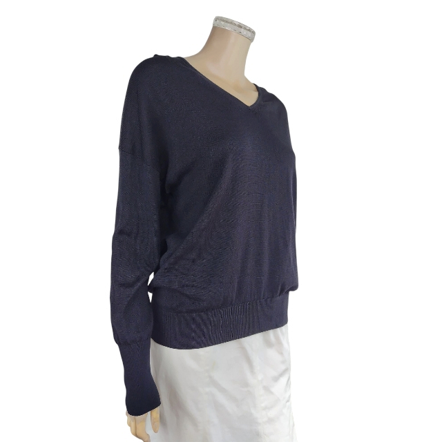 特徴:美艶な滑らかシルク混ニットです。Ⅴネックの美デコルテ、ドロップトスリーブのゆったりとした肩回り。肌触りしっとりのゆとりニットです。 ---↓ここにサイズ記入----